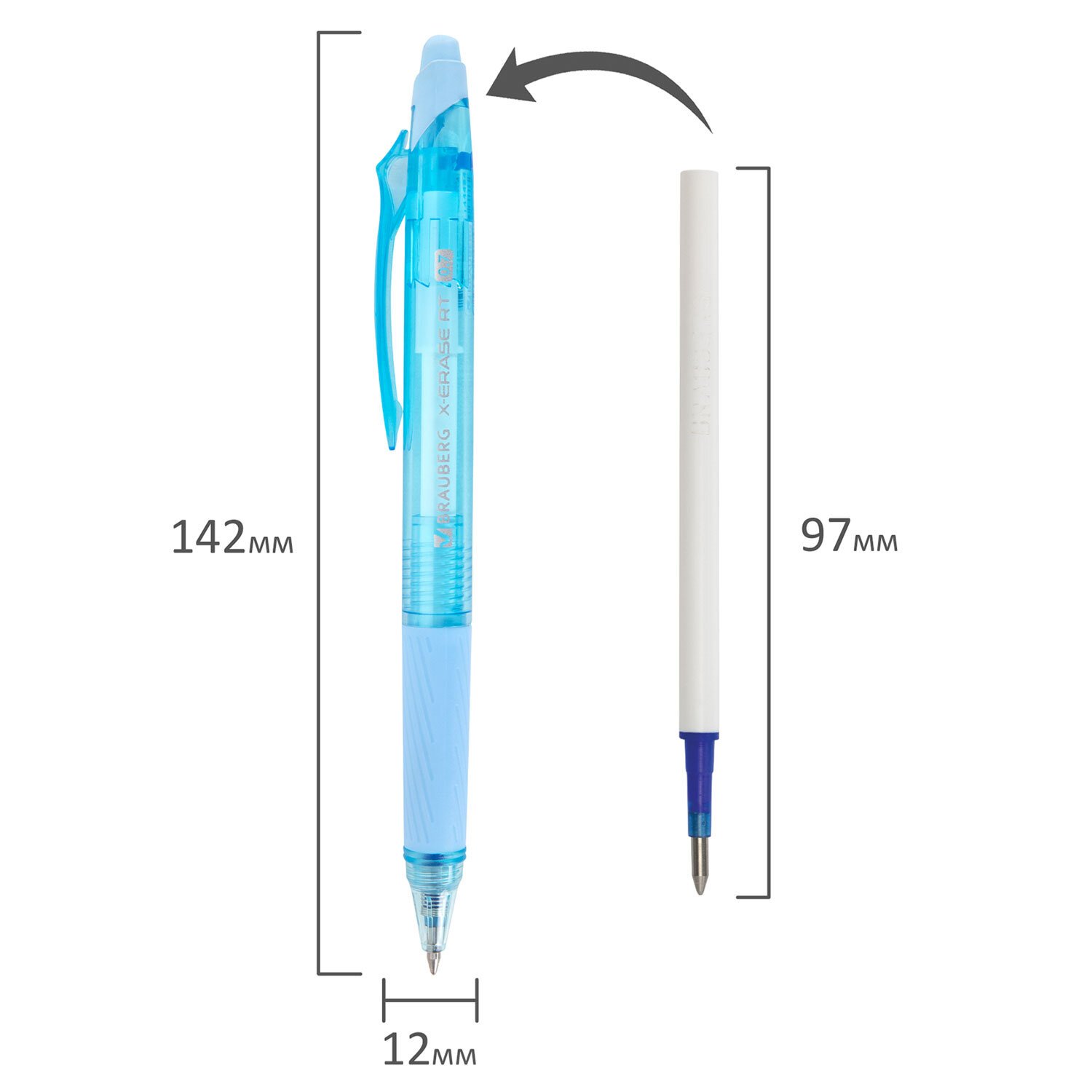 Ручка гелевая стираемая автоматическая BRAUBERG "X-ERASE RT", СИНЯЯ, пишущий узел 0,7мм, линия письма 0,5 мм, 144423