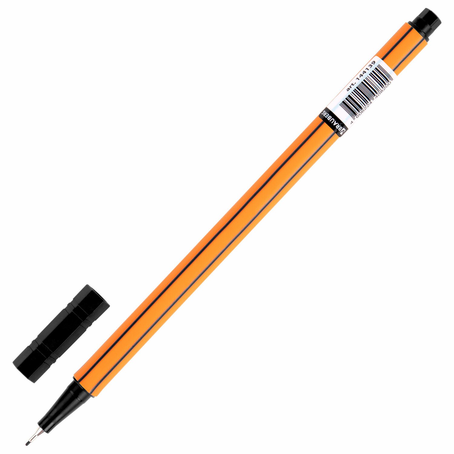 Ручка капиллярная (линер) ЧЕРНАЯ, BRAUBERG "FINE 040", шестигранная, линия письма 0,4 мм, 144139