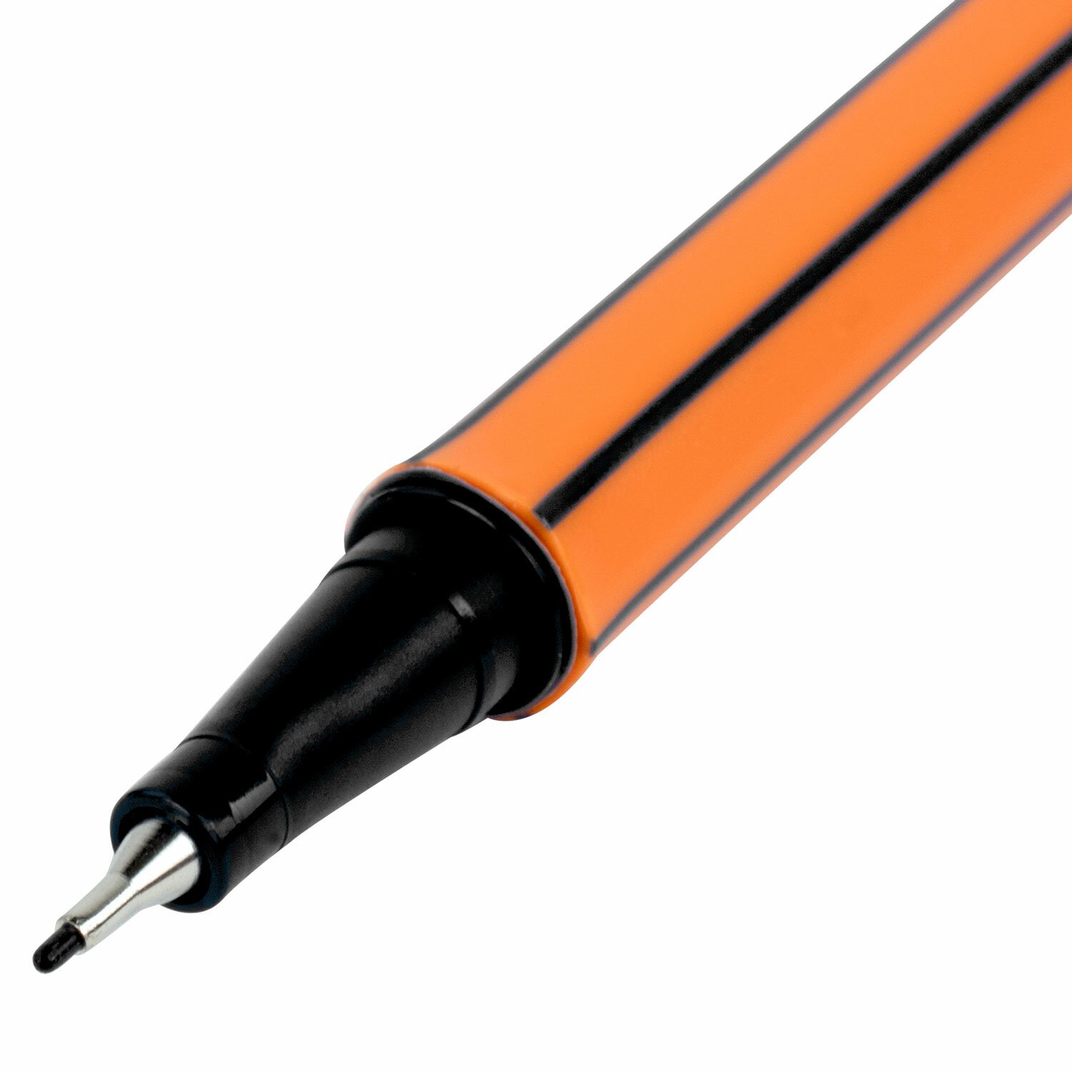 Ручка капиллярная имеет шестигранную форму корпуса оранжевого цвета. Благодаря такой форме корпуса изделие удобно располагается в руке. Супертонкий износостойкий металлический наконечник 0,4 мм идеально подходит для создания точных и аккуратных линий. Цвет колпачка соответствует цвету черных чернил.