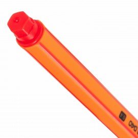 Ручка капиллярная имеет шестигранную форму корпуса оранжевого цвета. Благодаря такой форме корпуса изделие удобно располагается в руке. Супертонкий износостойкий металлический наконечник 0,4 мм идеально подходит для создания точных и аккуратных линий. Цвет колпачка соответствует цвету красных чернил.