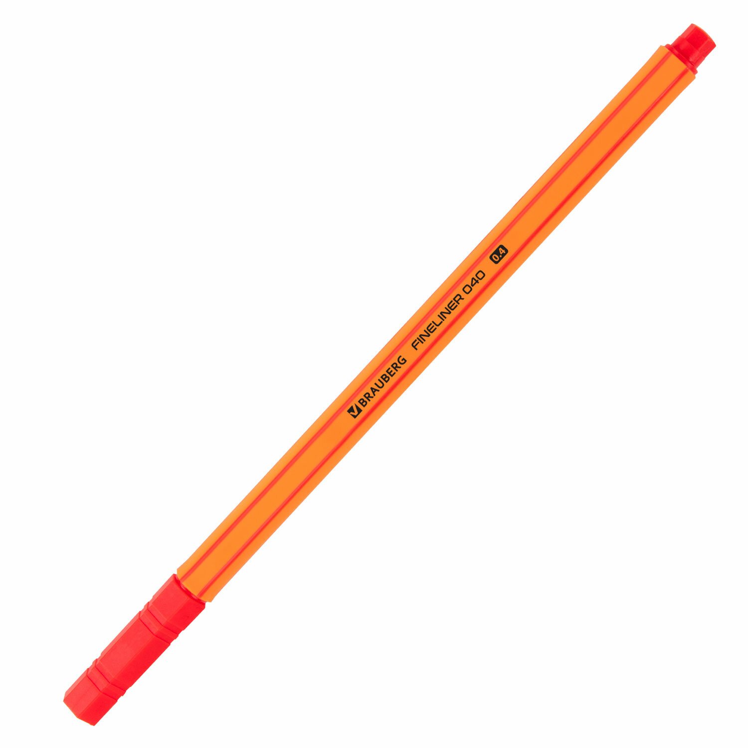 Ручка капиллярная (линер) КРАСНАЯ, BRAUBERG "FINE 040", шестигранная, линия письма 0,4 мм, 144142