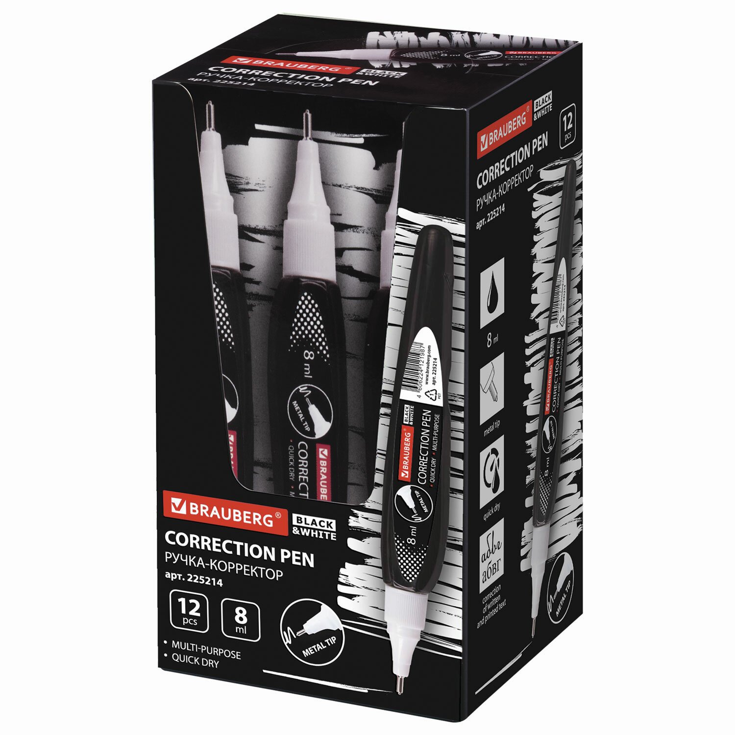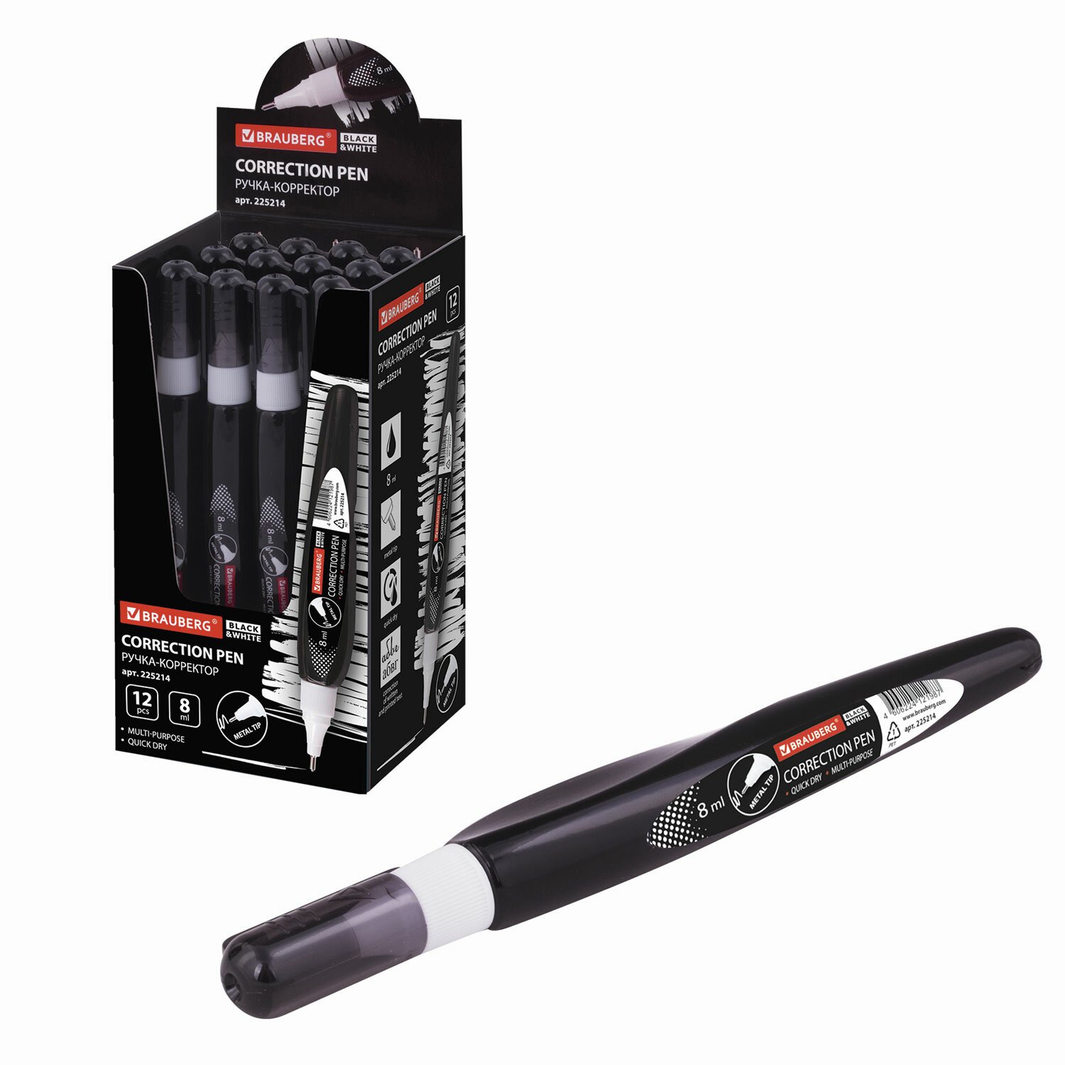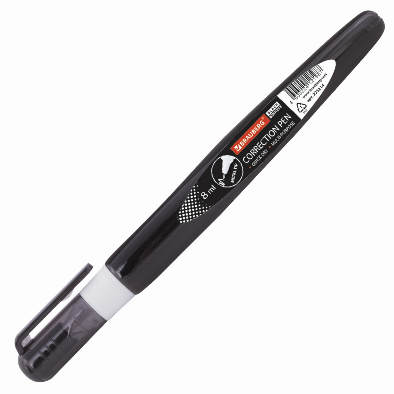 Ручка-корректор BRAUBERG, 8 мл, металлический наконечник, черный корпус, 225214