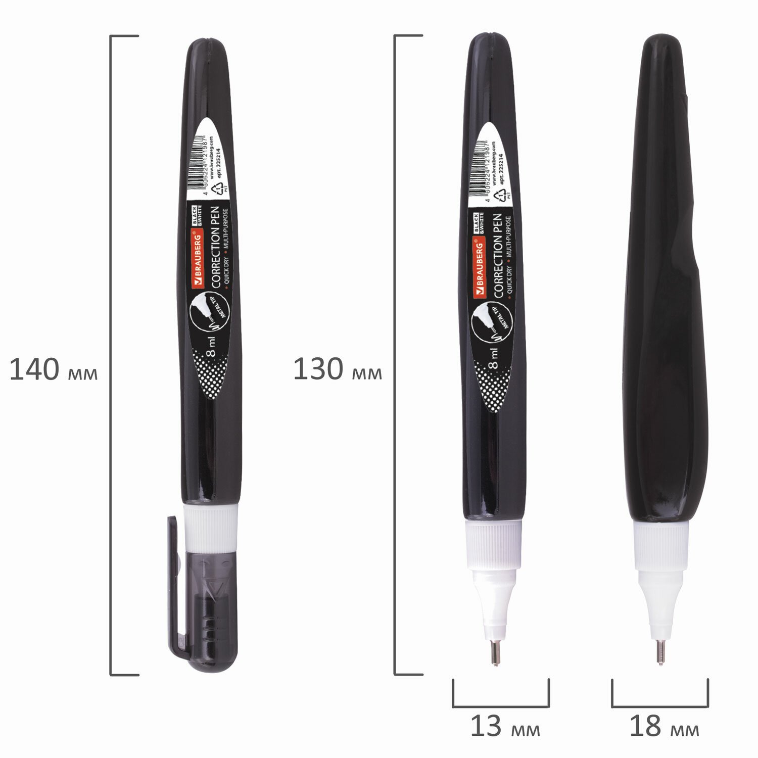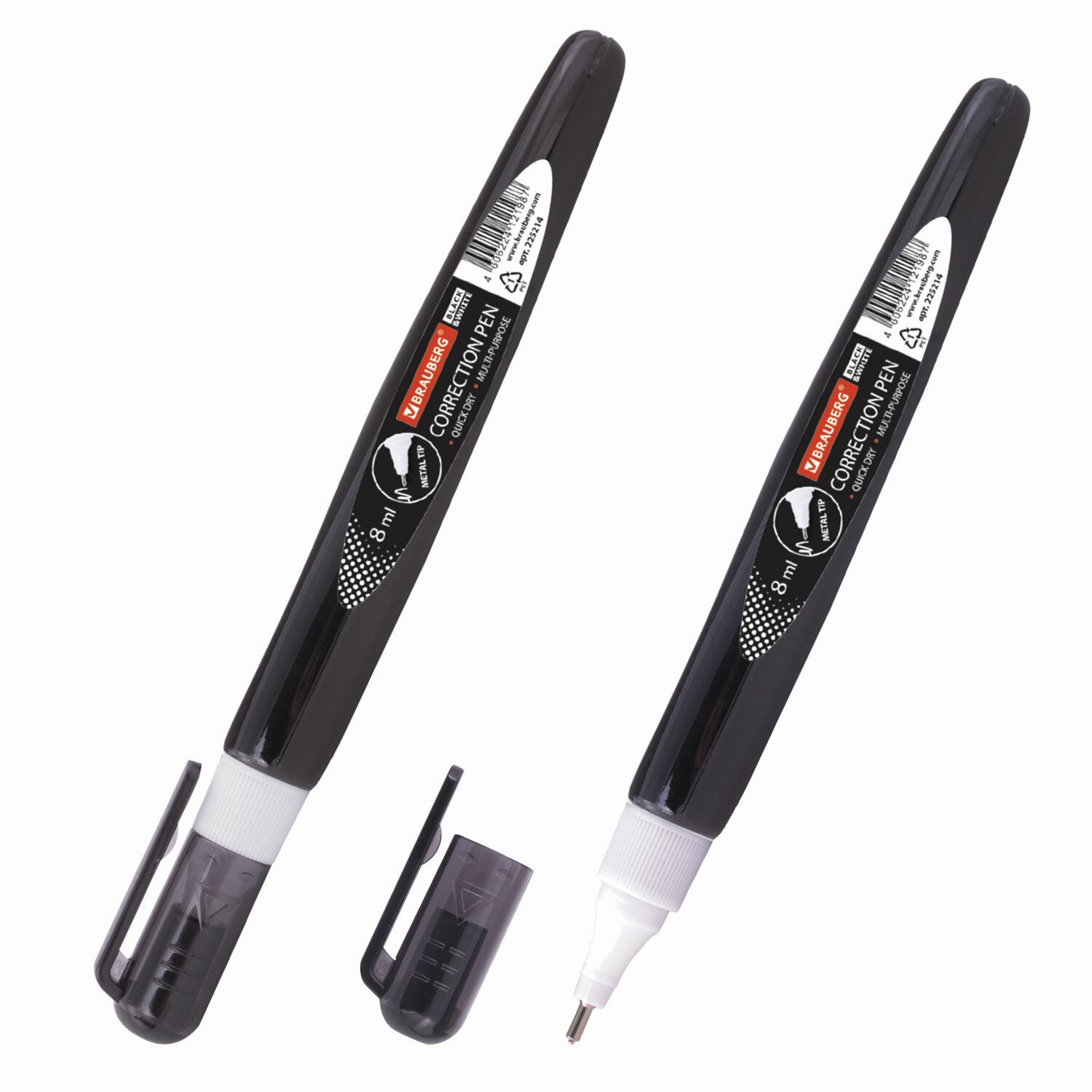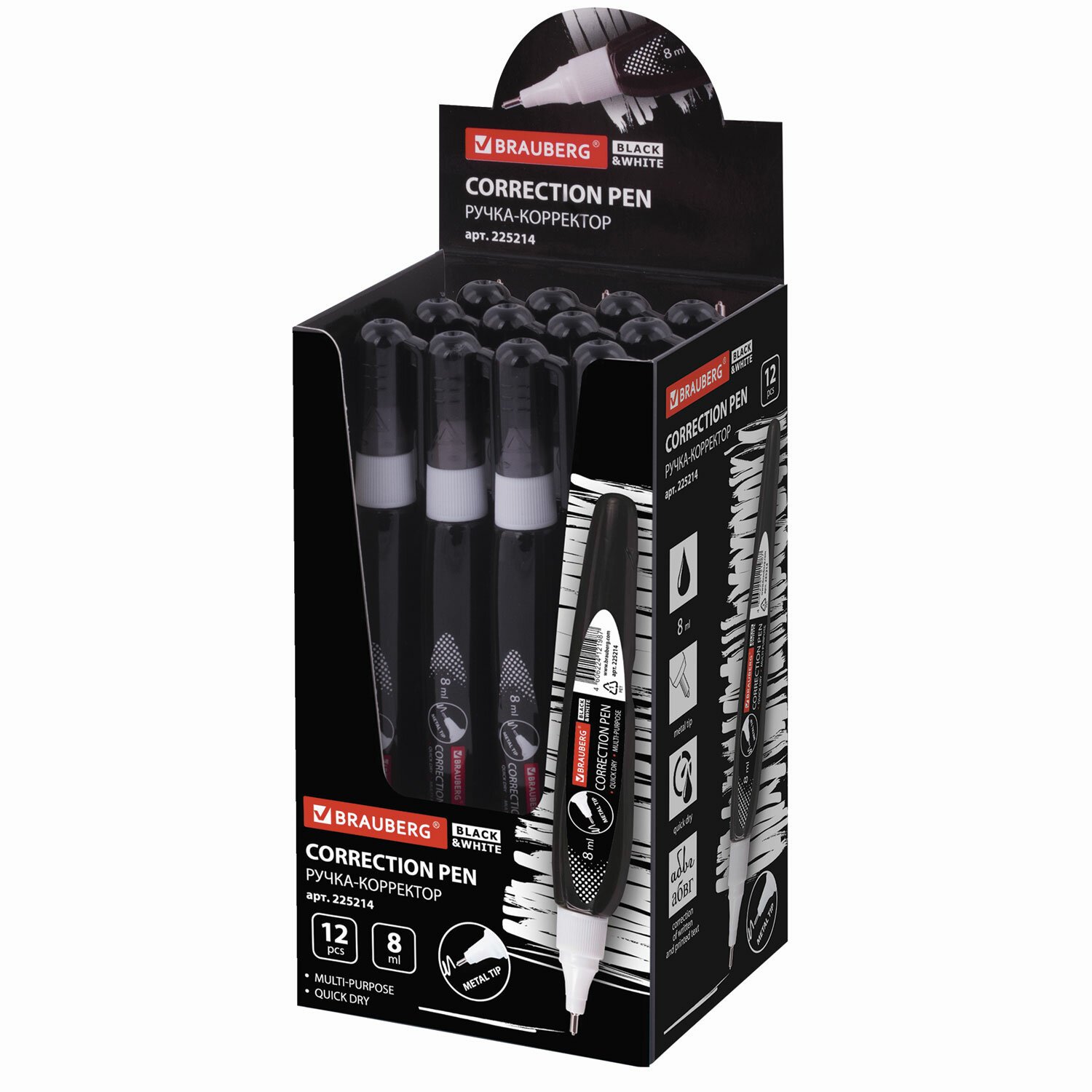 Ручка-корректор BRAUBERG, 8 мл, металлический наконечник, черный корпус, 225214