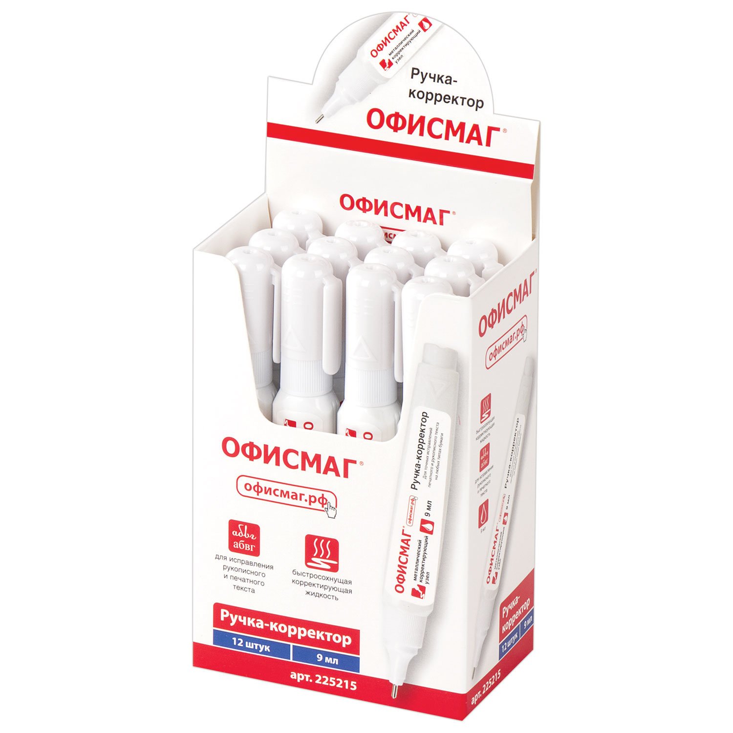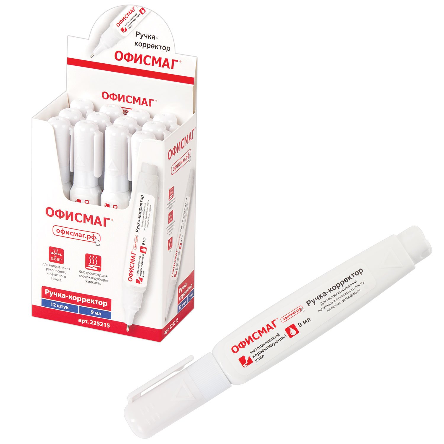 Ручка-корректор ОФИСМАГ, 9 мл, металлический наконечник, 225215