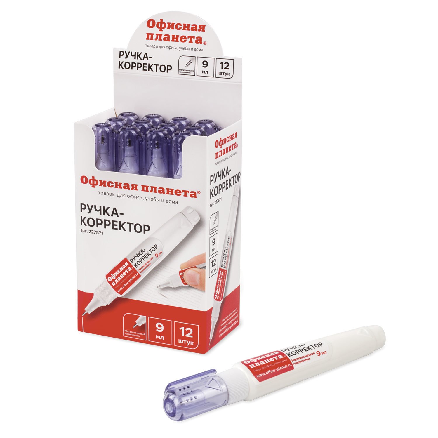 Ручка-корректор ОФИСНАЯ ПЛАНЕТА, 9 мл, металлический наконечник, 227571