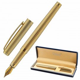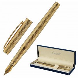 Ручка подарочная перьевая GALANT "VERSUS", корпус золотистый, детали золотистые, узел 0,8 мм, синяя, 143528