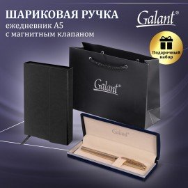 Ручка перьевая GALANT Versus, корпус золотистый, ежедневник недатированный А5 черный, пакет, 880906