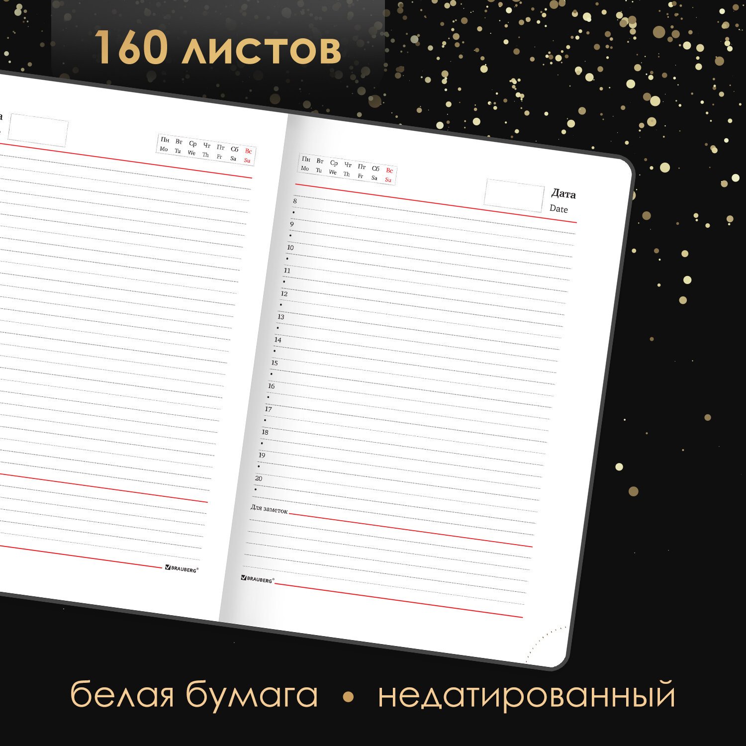 Ежедневник недатированный А5 138x213 мм BRAUBERG "Waves" под кожу, застежка, 160 л., черный/синий, 114453