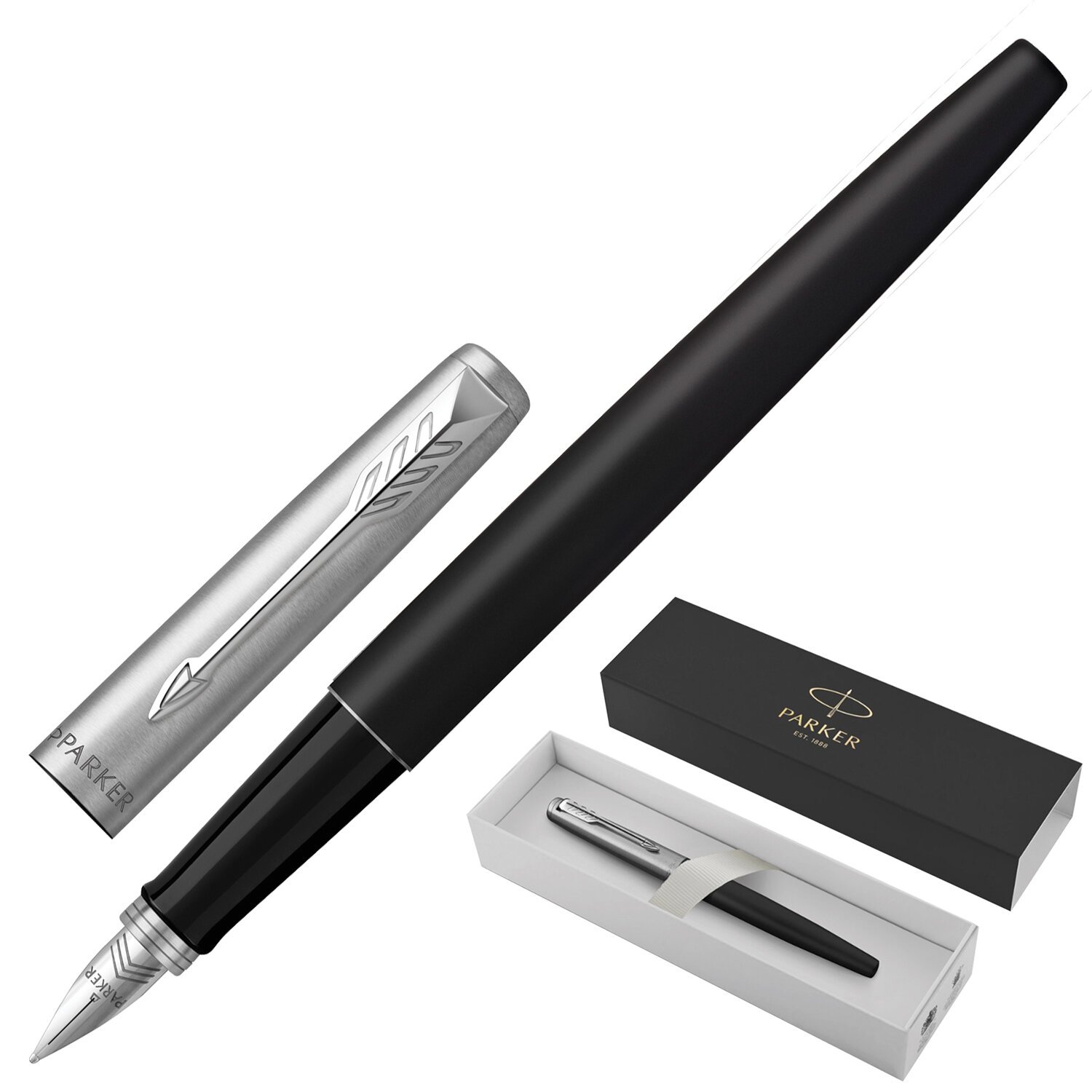 Новинка PARKER 2018 – перьевая ручка коллекции "Jotter" в металлическом корпусе черного цвета. Отличный подарок как для тех, кто только пробует писать пером, так и для активных пользователей письменной принадлежности подобного рода.