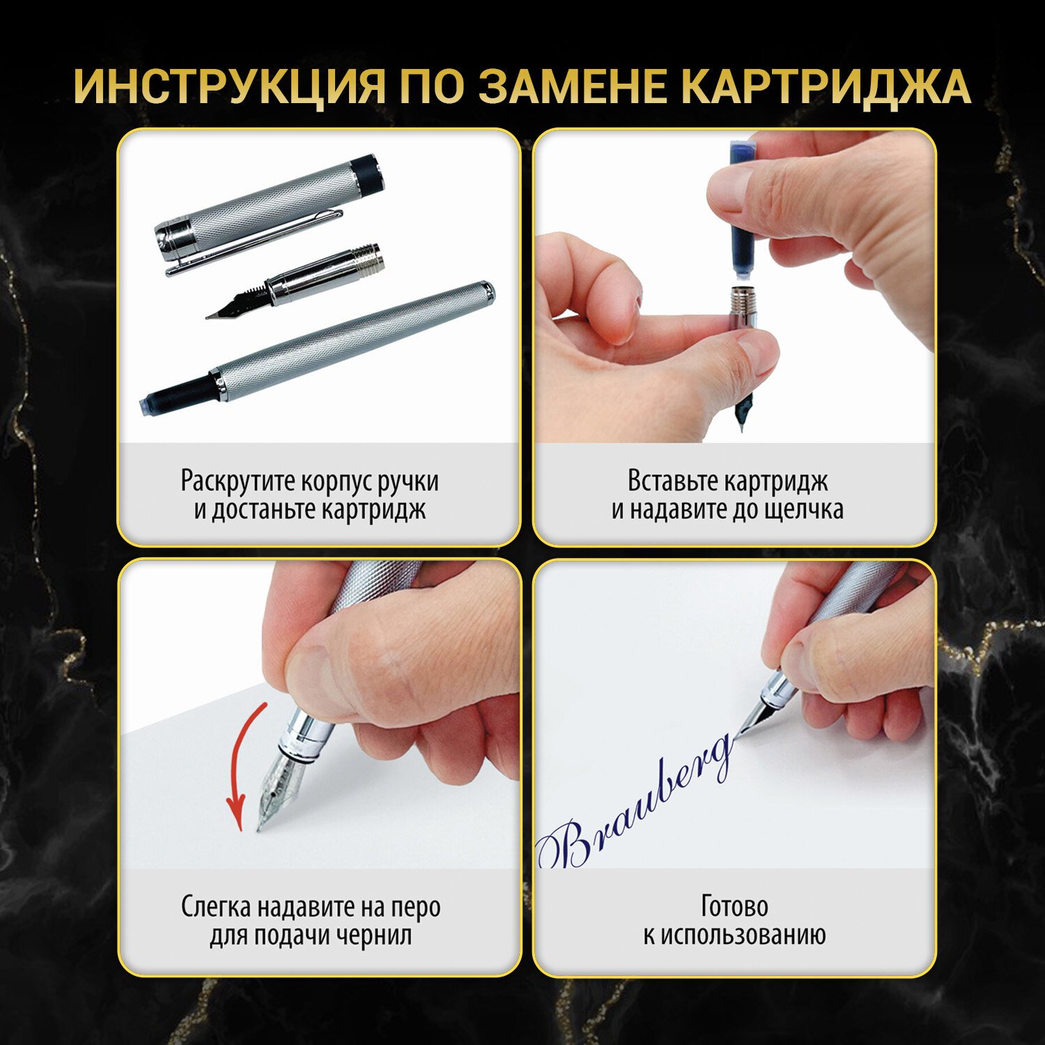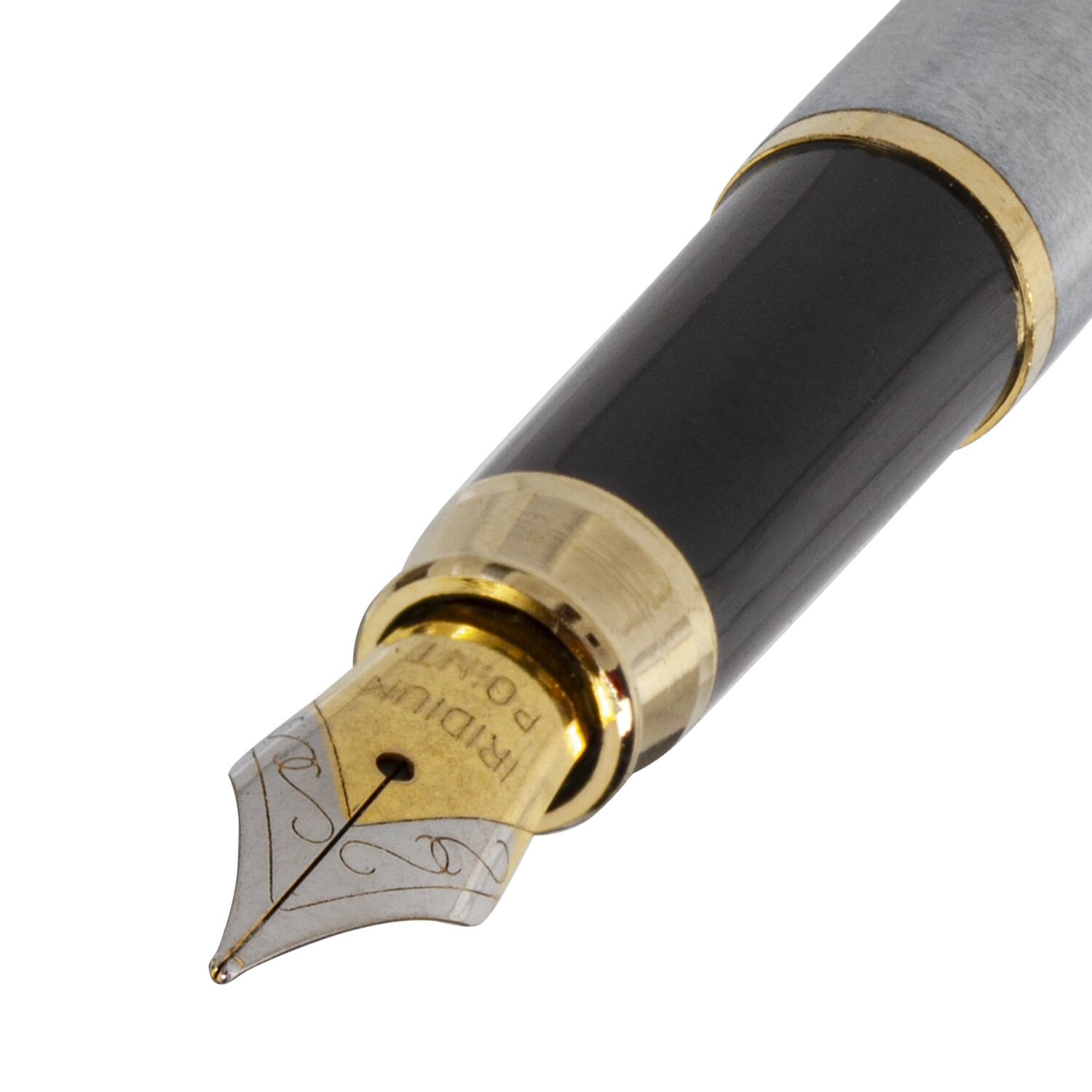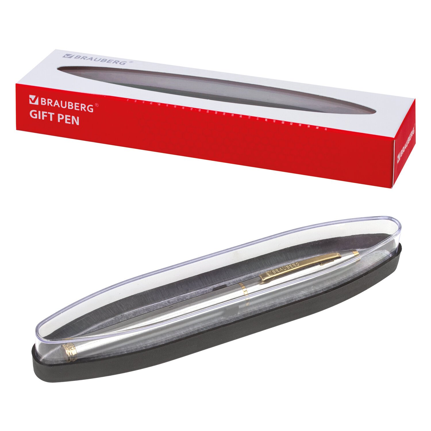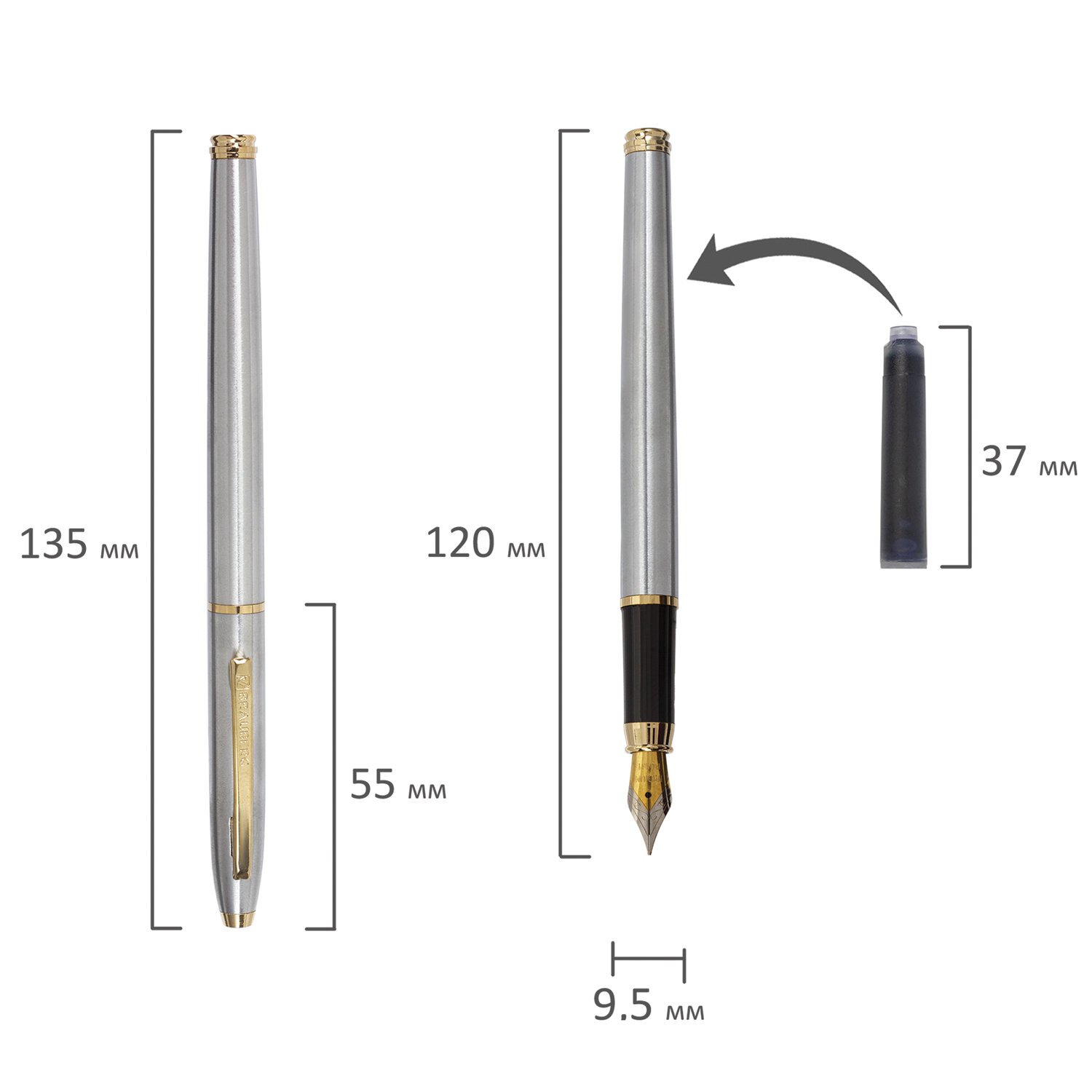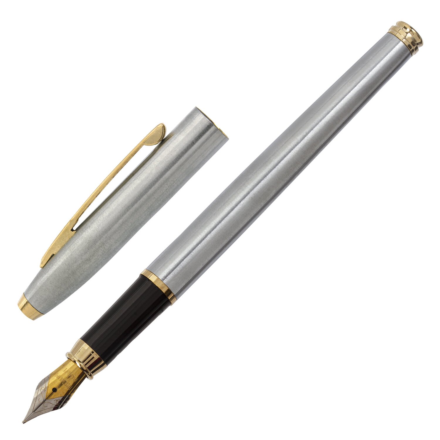 Ручка подарочная перьевая BRAUBERG "Maestro", СИНЯЯ, корпус серебристый с золотистыми деталями, 143469