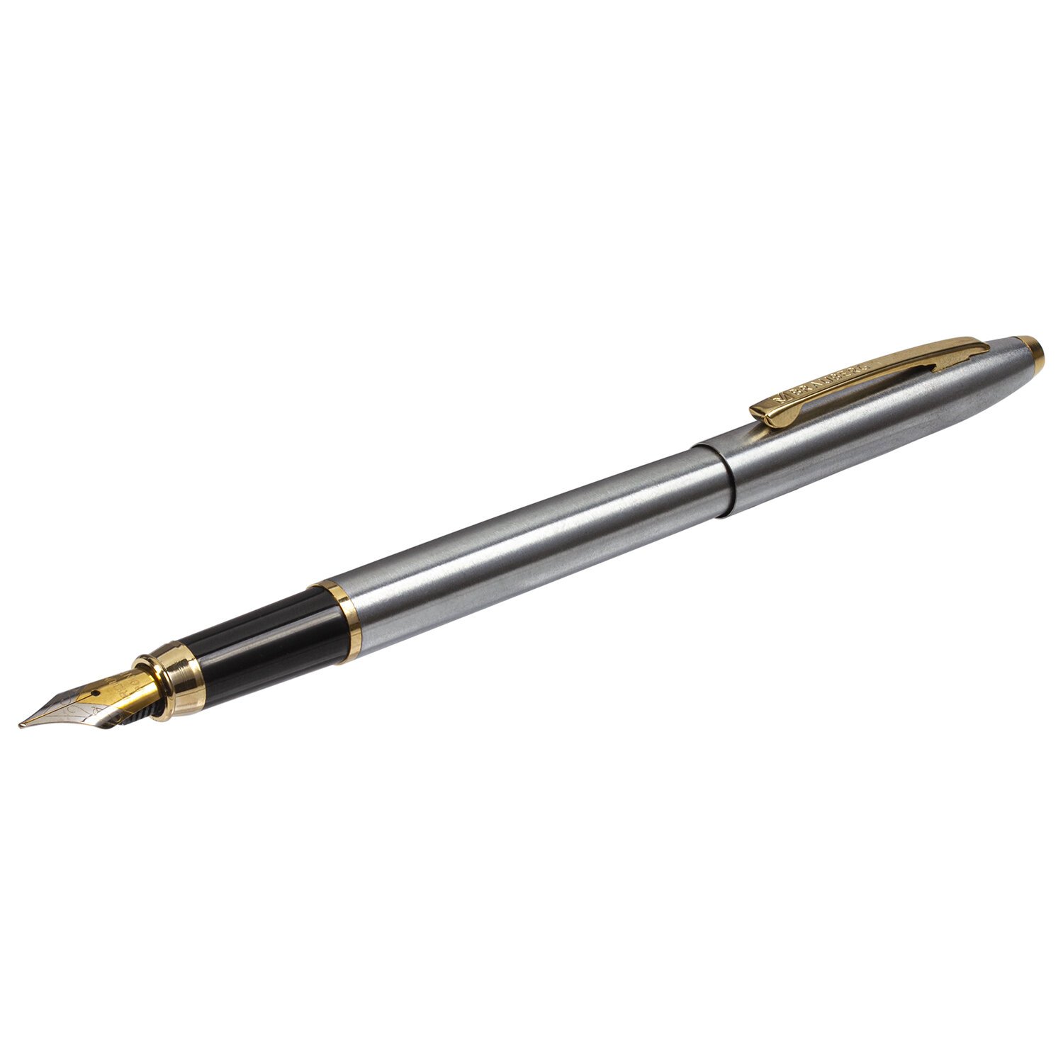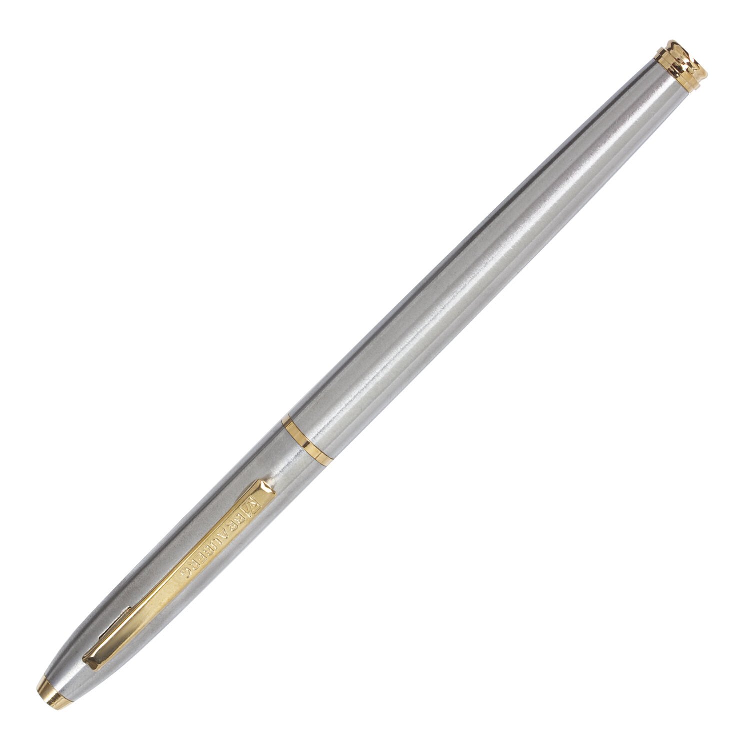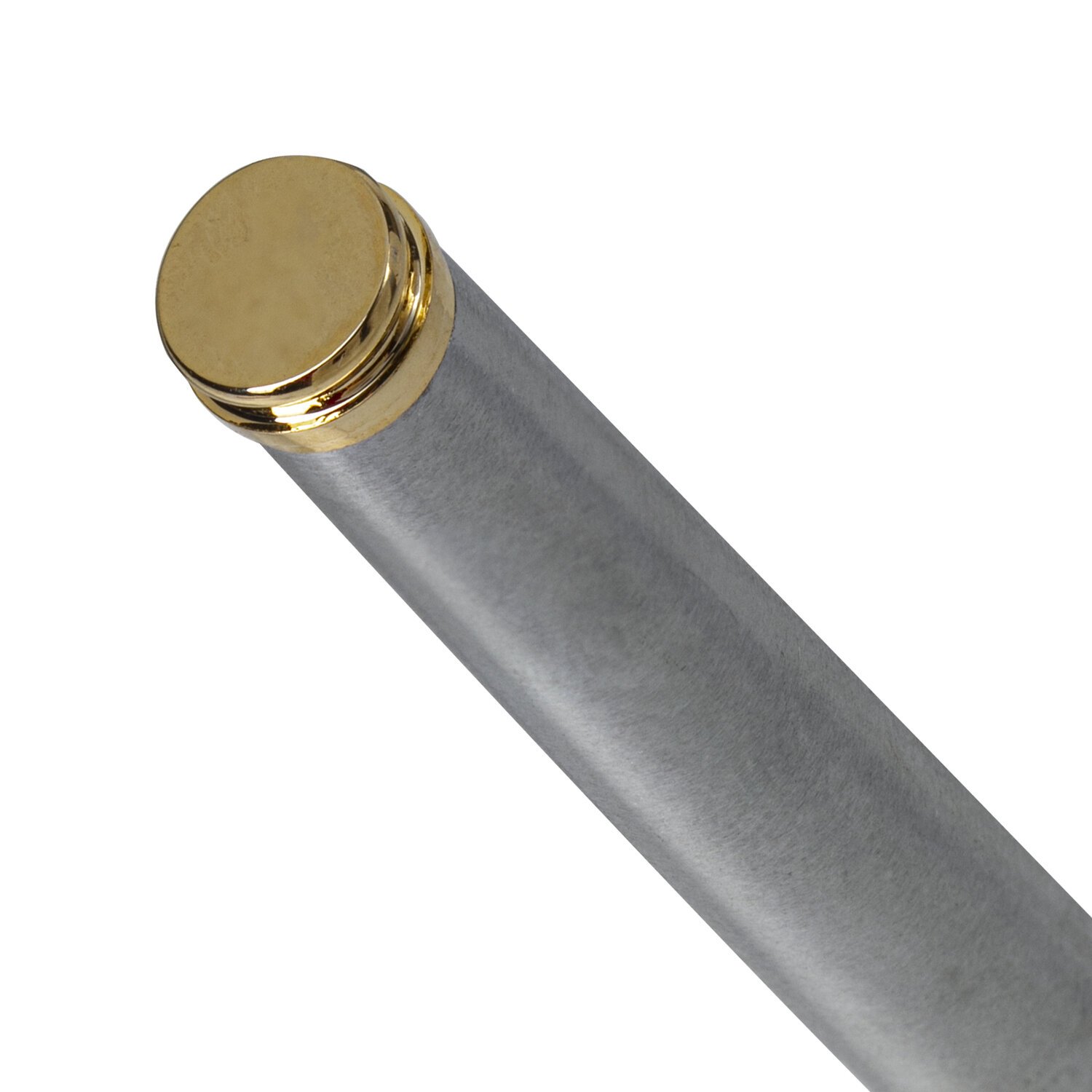 Стильная модель перьевой ручки с корпусом из металла серебристого цвета и золотистыми деталями. Синий цвет чернил, иридиевое перо украшено гравировкой. Диаметр пишущего узла – 0,7 мм. Тип пера – M (Medium) – средняя ширина линии. Размер картриджа – 37 мм.