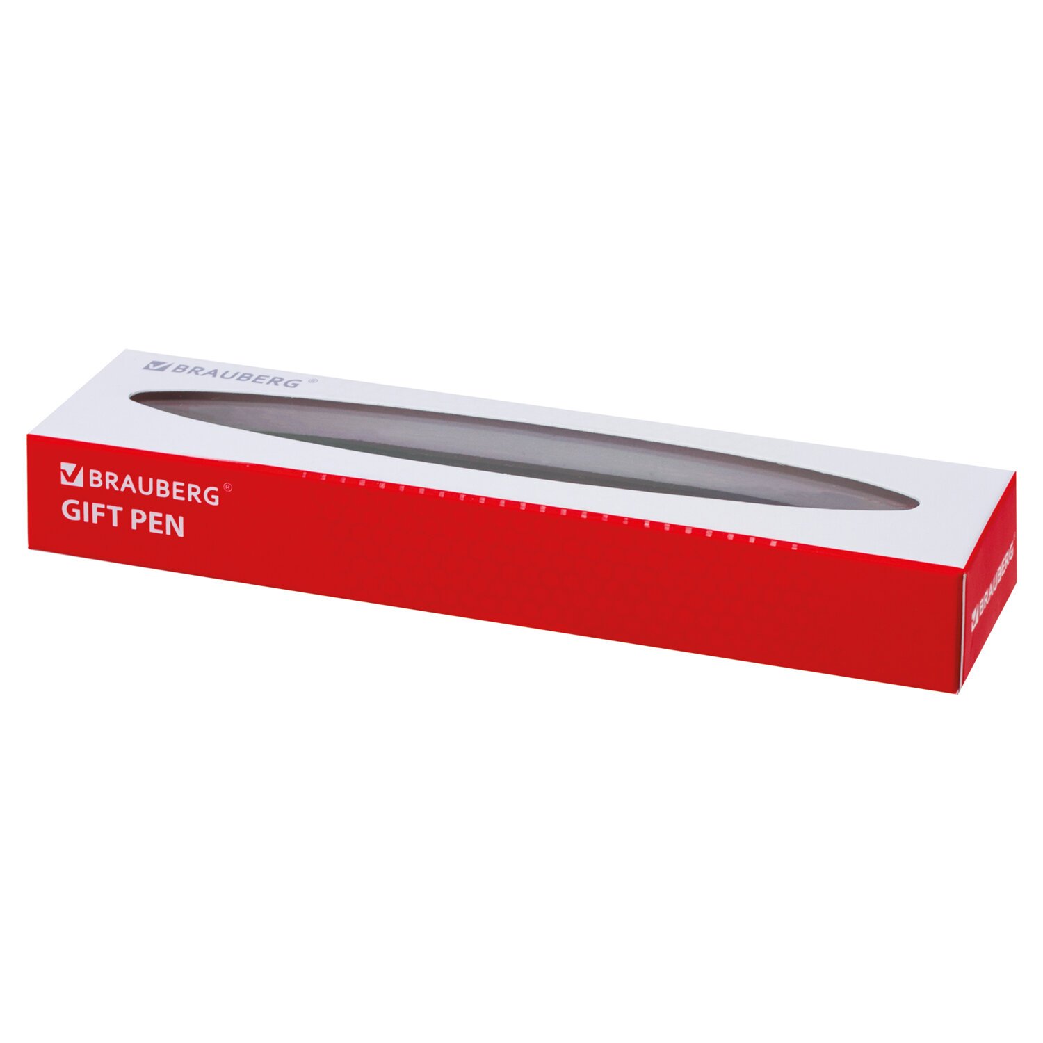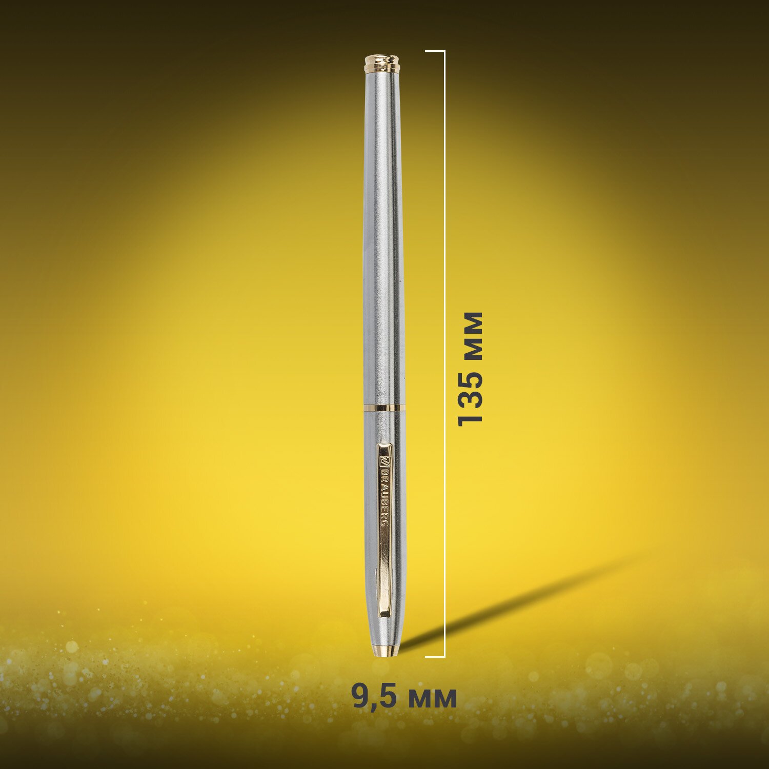 Ручка подарочная перьевая BRAUBERG "Larghetto", СИНЯЯ, корпус серебристый с хромированными деталями, 143475