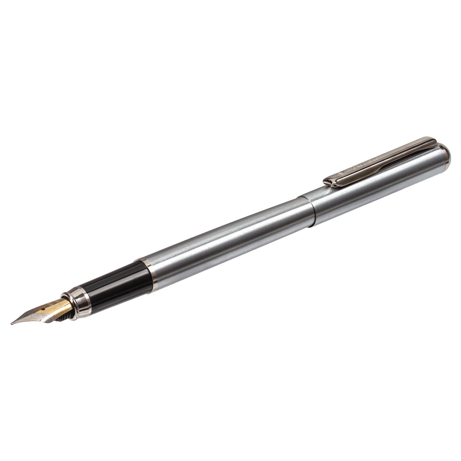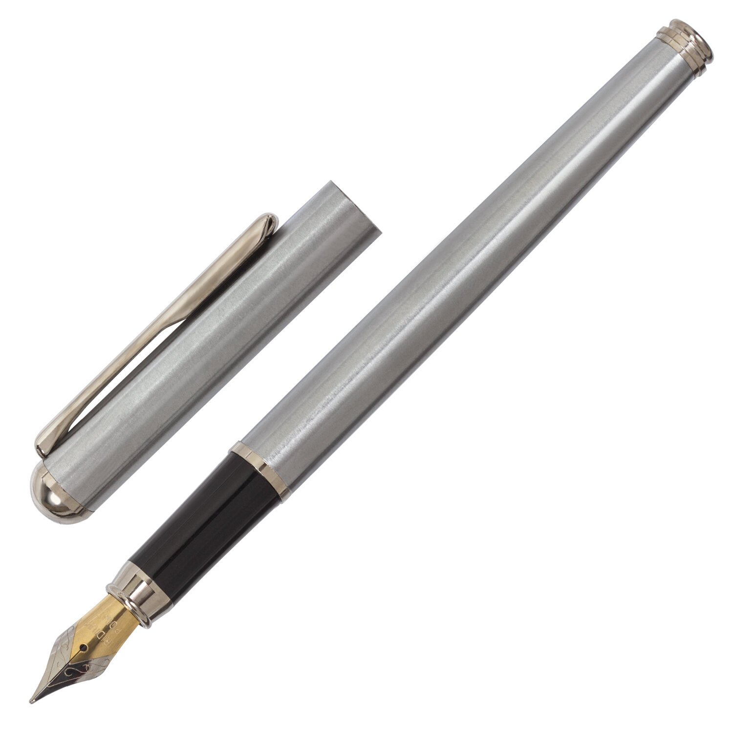 Ручка подарочная перьевая BRAUBERG "Maestro", СИНЯЯ, корпус серебристый с золотистыми деталями, 143469