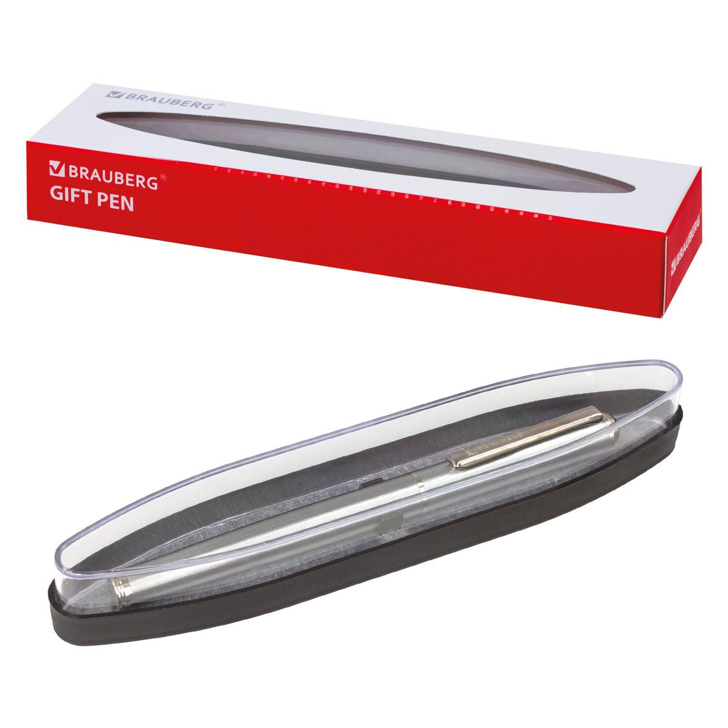 Ручка подарочная перьевая BRAUBERG "Larghetto", СИНЯЯ, корпус серебристый с хромированными деталями, 143475