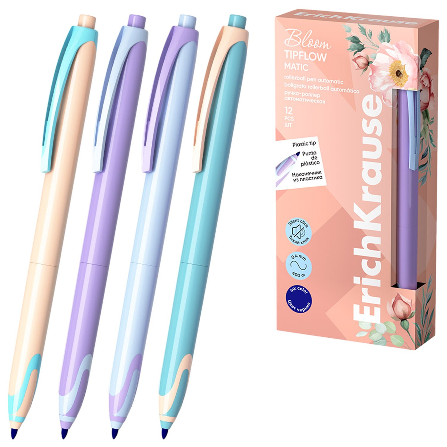 Ручка-роллер автоматическая ERICH KRAUSE TipFlow Pastel Bloom, СИНЯЯ, корпус ассорти,, 63705