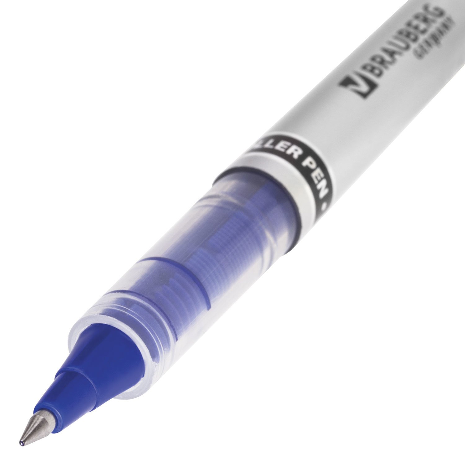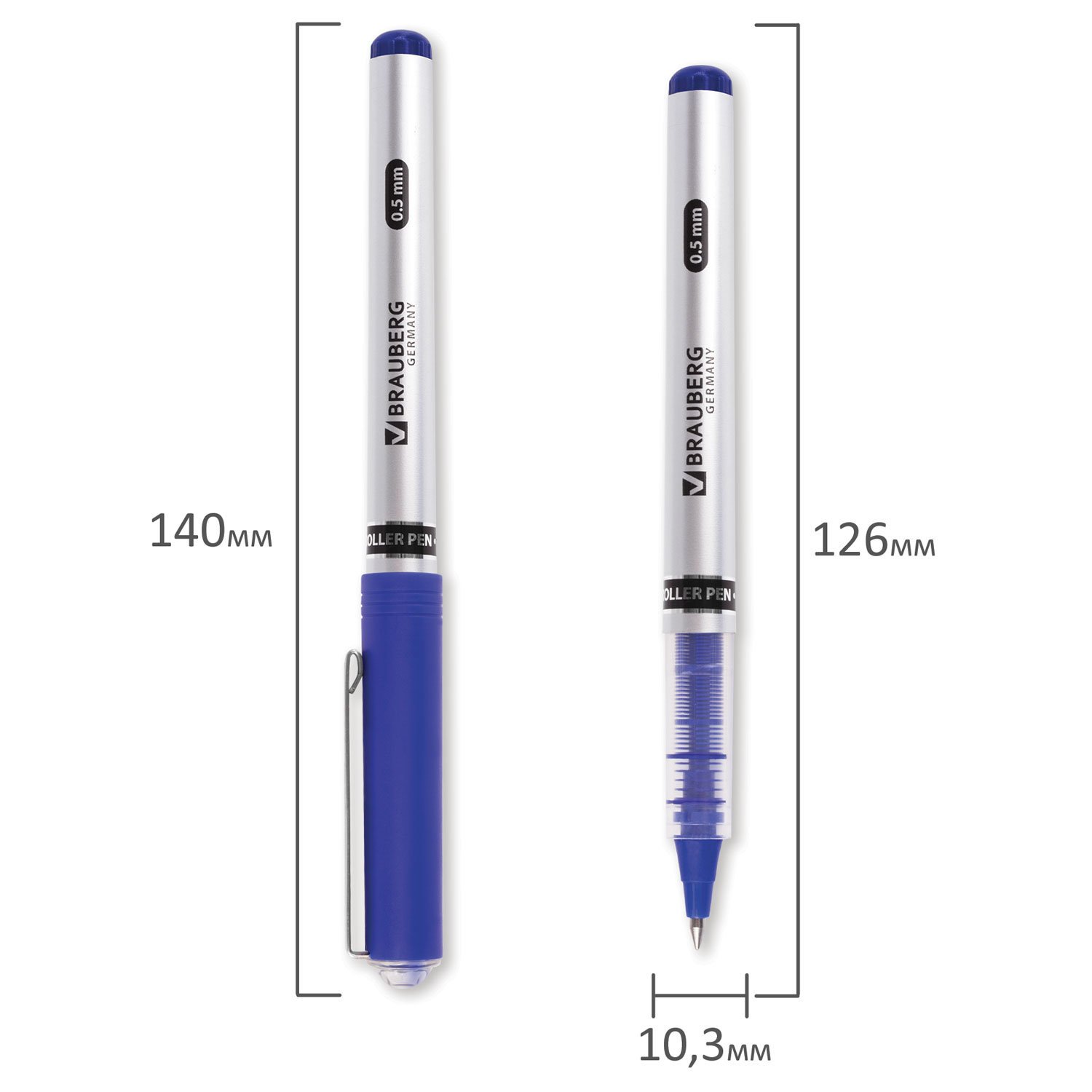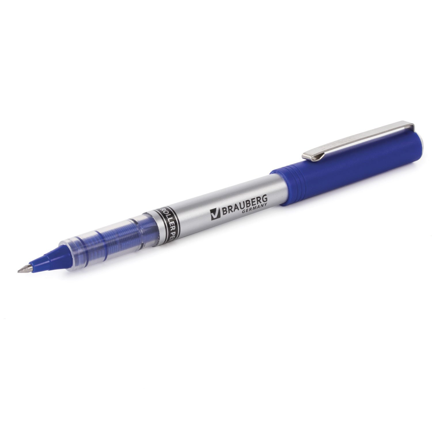 Ручка-роллер BRAUBERG "Control", СИНЯЯ, корпус серебристый, узел 0,5 мм, линия письма 0,3 мм, 141554