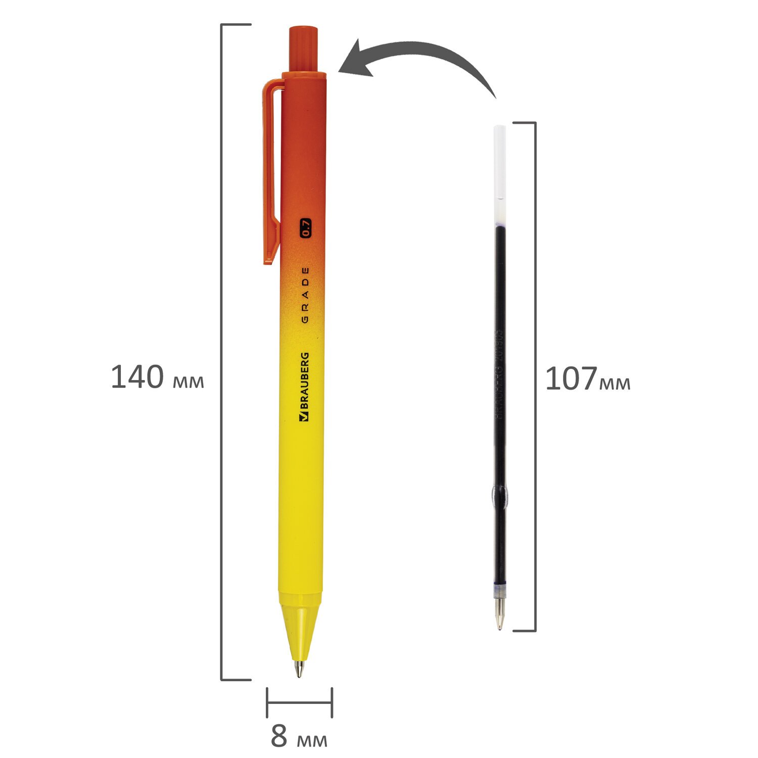 Автоматическая шариковая ручка BRAUBERG "Grade" обладает soft-touch покрытием и оригинальным дизайном в стиле градиент на корпусе.