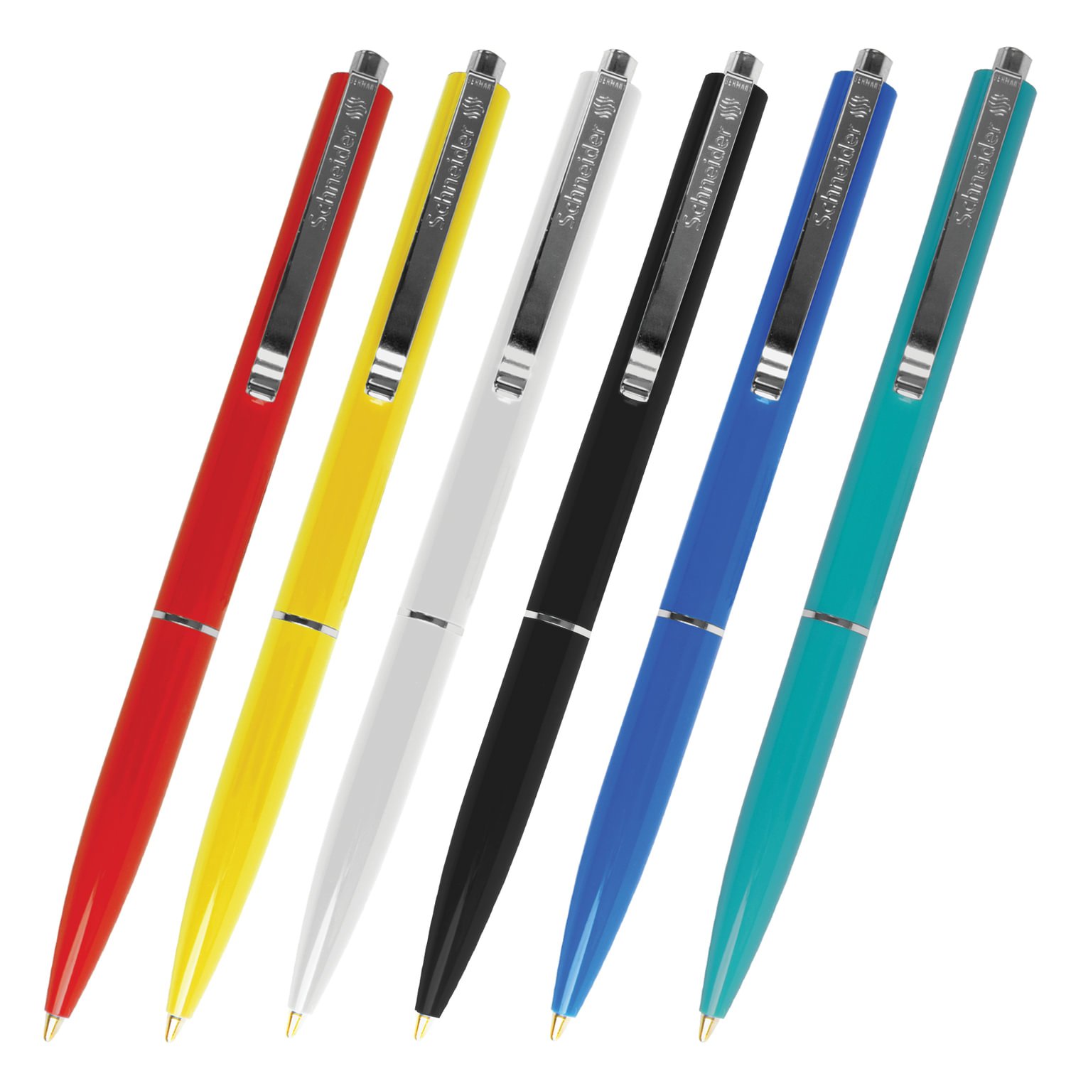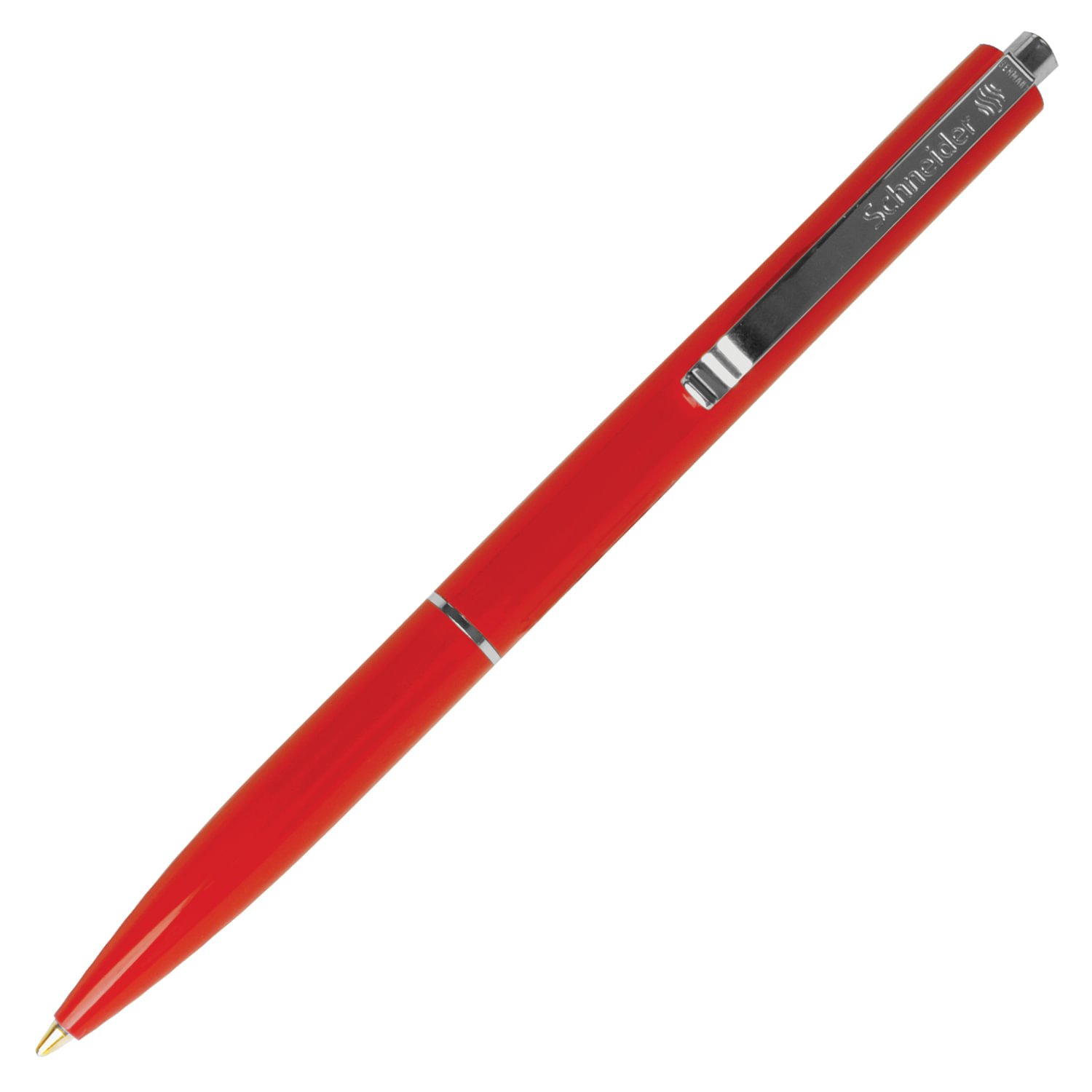 Классическая шариковая автоматическая ручка SCHNEIDER в круглом пластиковом корпусе, стальным клипом и металлической кнопкой. Поставляется в нескольких вариантах цвета (без возможности выбора).