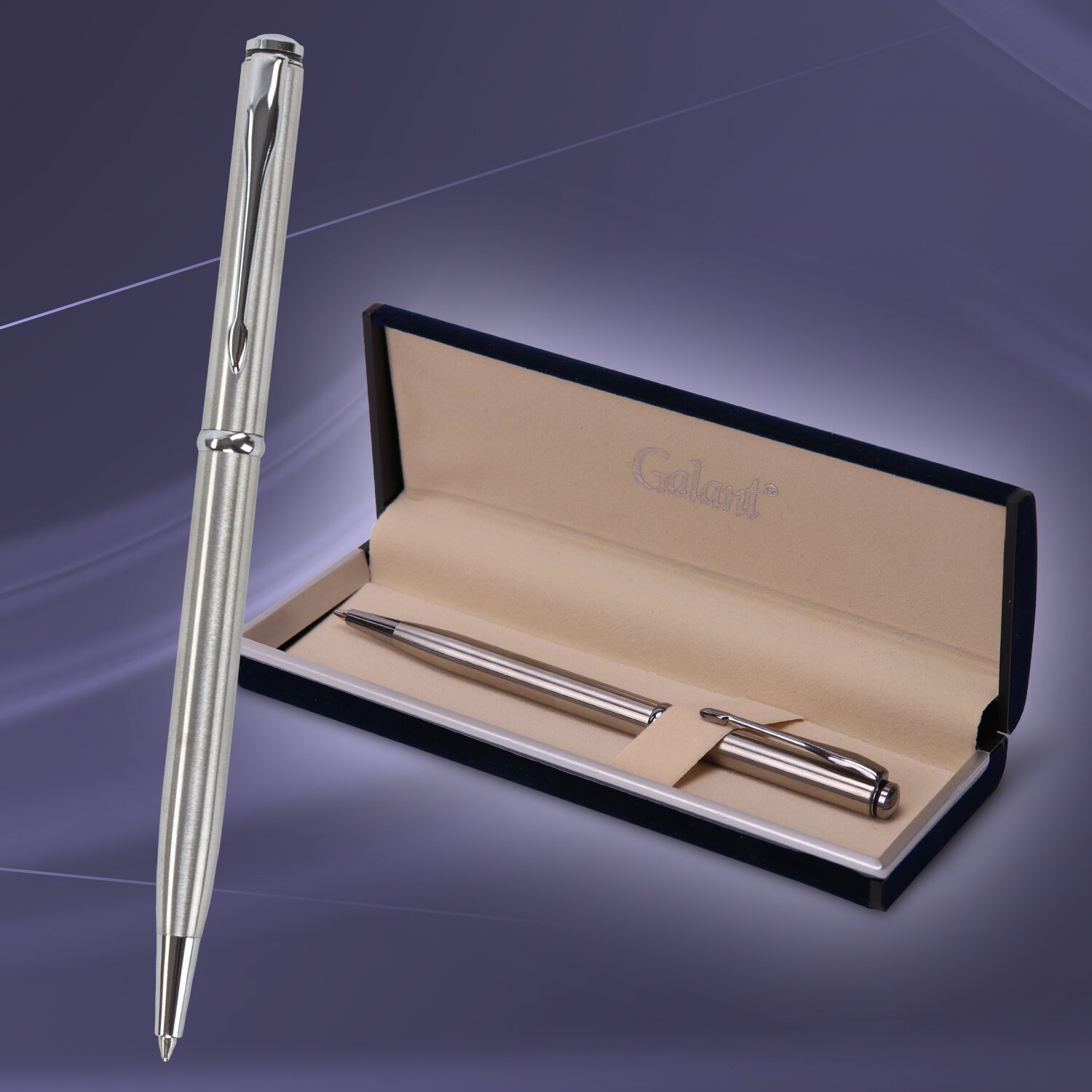 Ручка подарочная шариковая GALANT "ETUDE", корпус серебристый, детали хром, узел 0,7 мм, синяя, 143506
