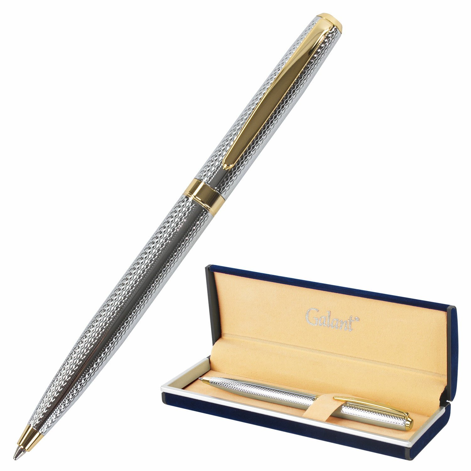 Ручка подарочная шариковая GALANT "Barendorf", корпус серебристый с гравировкой, золотистые детали, пишущий узел 0,7 мм, синяя, 141011