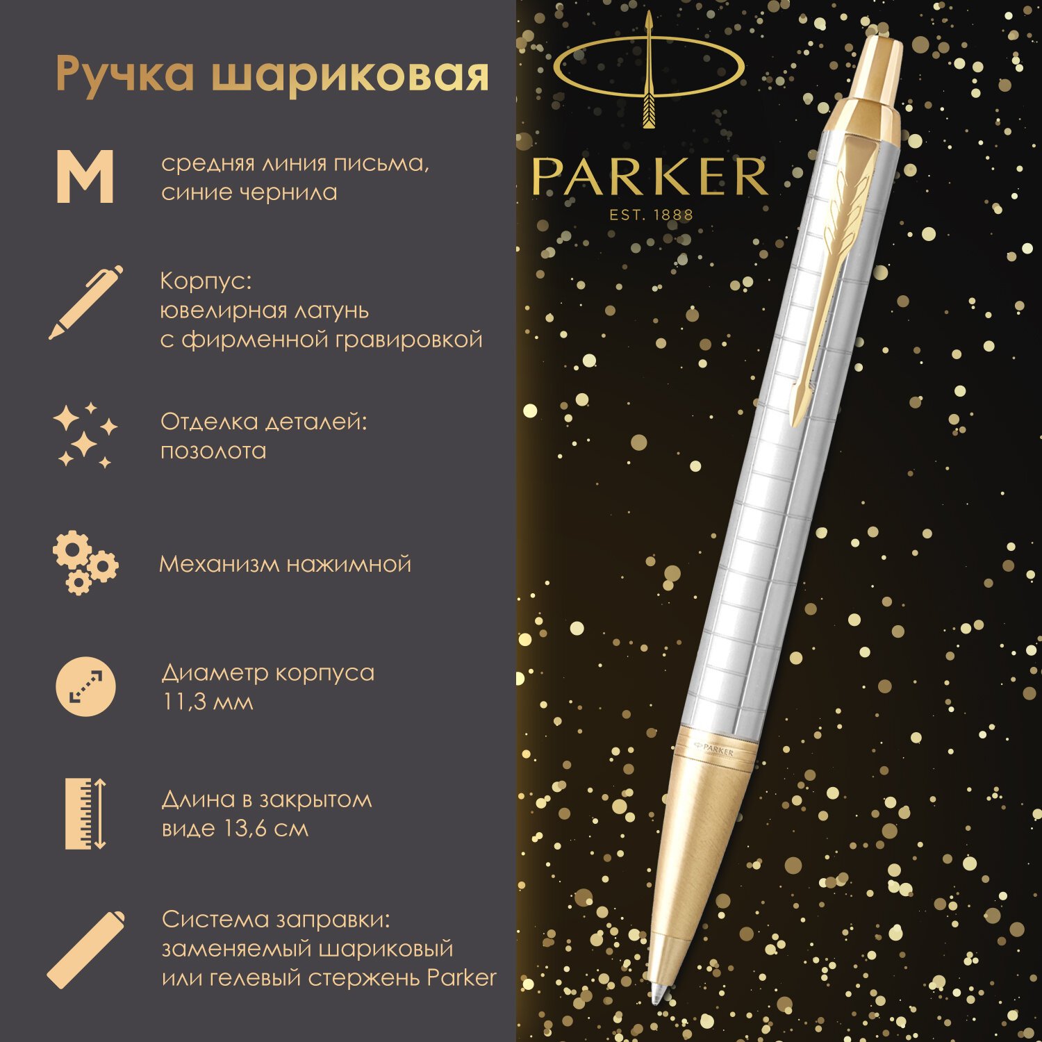 Ручка шариковая PARKER "IM Premium Warm Silver GT", корпус матовое серебро, позолота, синяя, 1931687