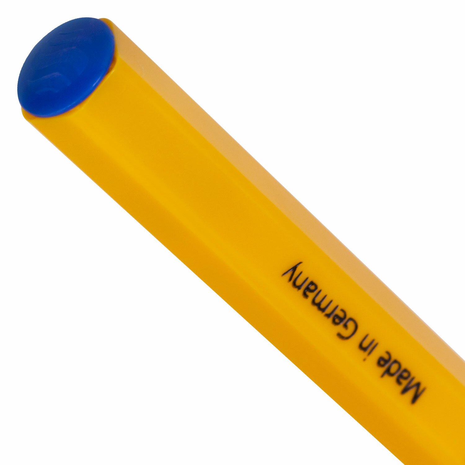 Одноразовая шариковая ручка SCHNEIDER Tops 505 F в пластиковом шестигранном желтом корпусе с деталями в цвет чернил.
