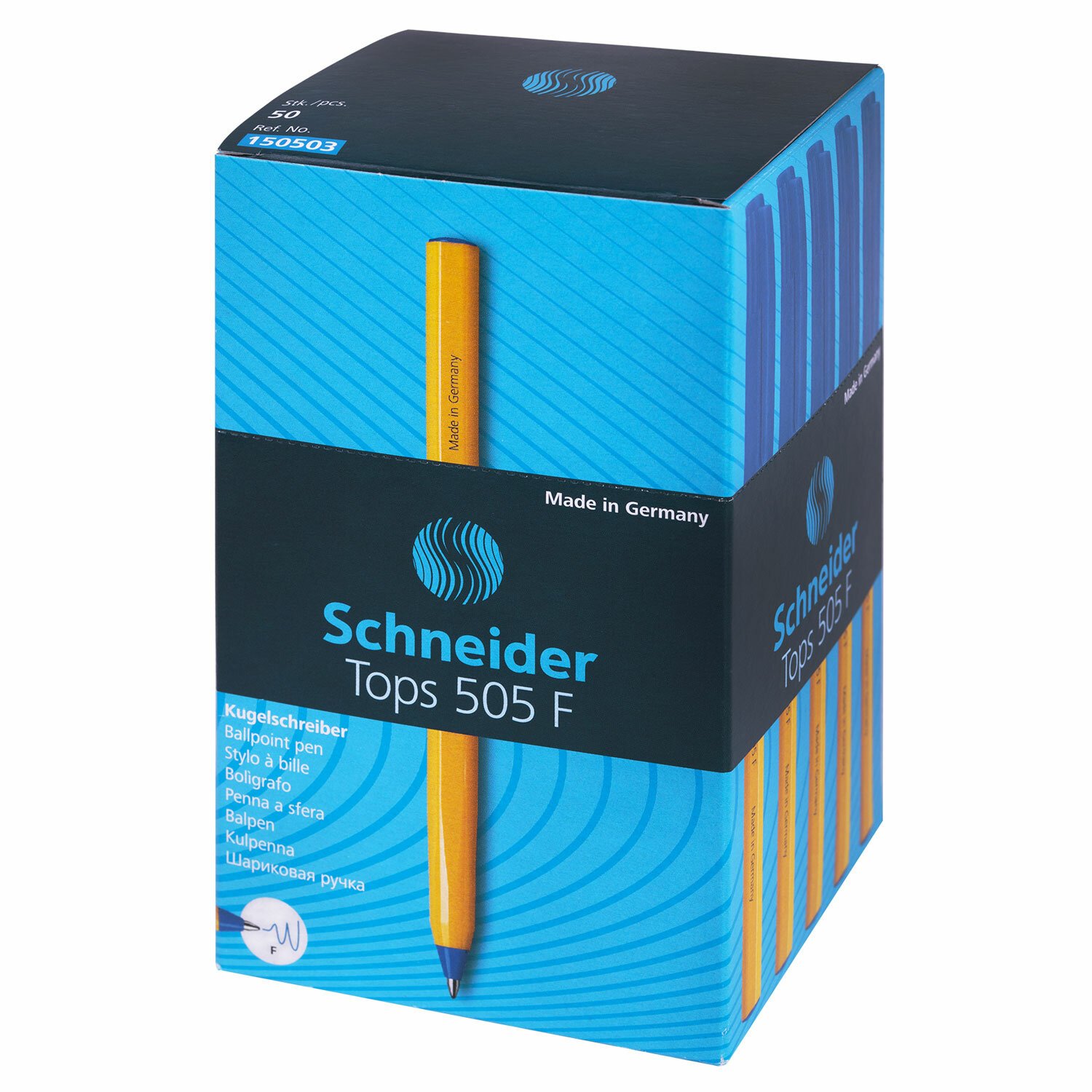 Ручка шариковая SCHNEIDER (Германия) "Tops 505 F", СИНЯЯ, корпус желтый, узел 0,8 мм, линия письма 0,4 мм, 150503