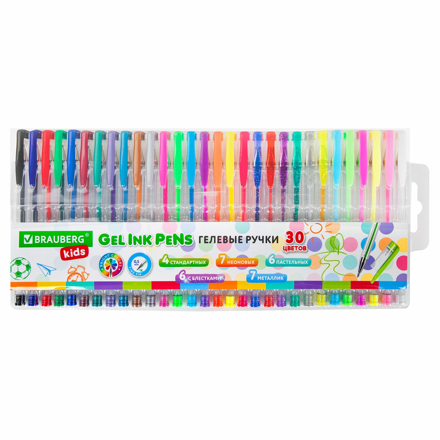 Ручки гелевые НАБОР 30 ЦВЕТОВ, линия письма 0,5 мм, BRAUBERG KIDS, 143819