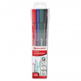 Набор капиллярных ручек (линеров) BRAUBERG 4 шт., АССОРТИ, "Aero", трехгранные, металлический наконечник, линия письма 0,4 мм, 141524