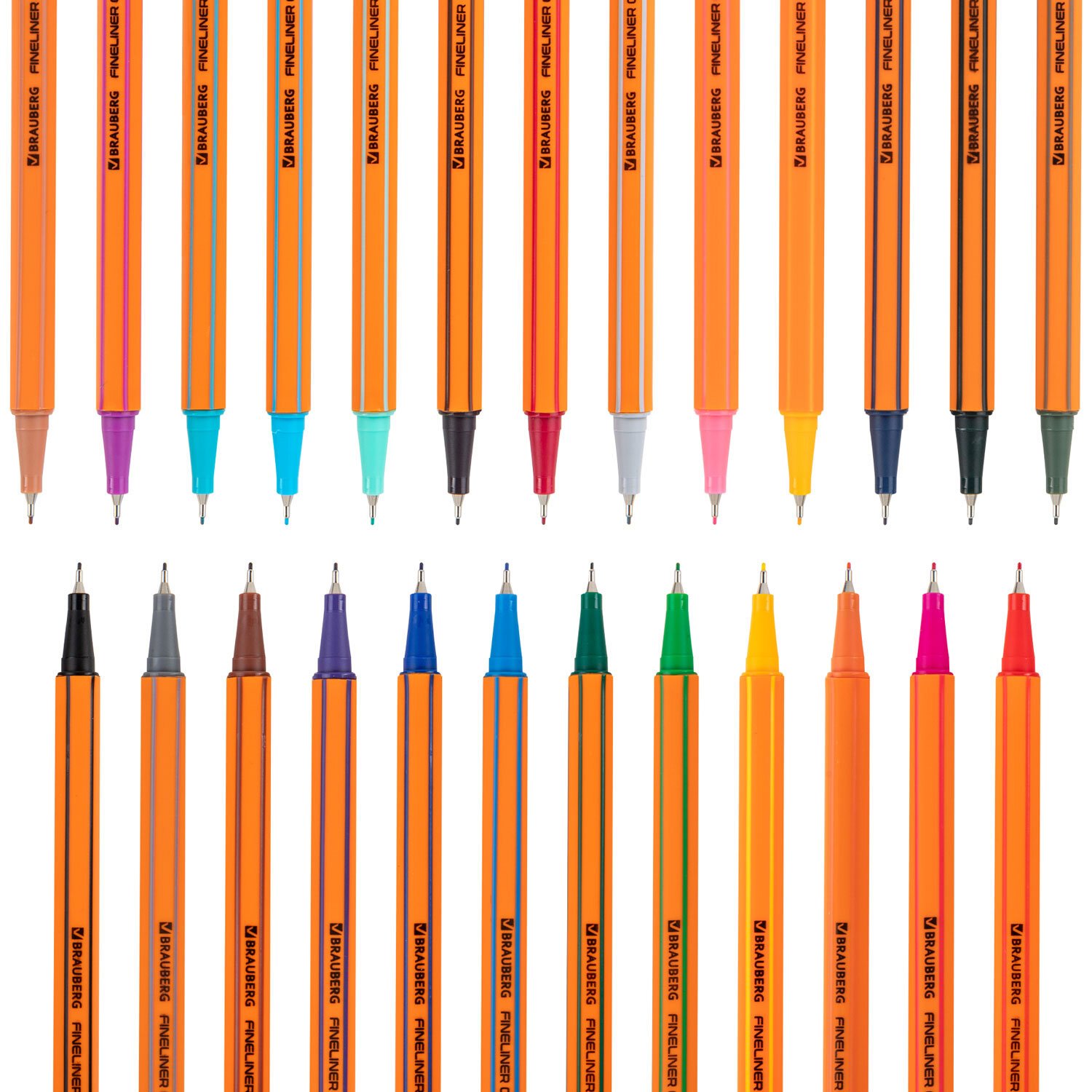Набор капиллярных ручек BRAUBERG "FINE 040" состоит из 25 ярких цветов: желтый, оранжевый, розовый, красный, светло-зеленый, зеленый, голубой, синий, фиолетовый, коричневый, серый, черный, сиреневый, морская волна, небесно-голубой, мятный, черное дерево, винный, светло-серый, светло-коричневый, светло-розовый, темно-синий, пурпурный, темно-серый.