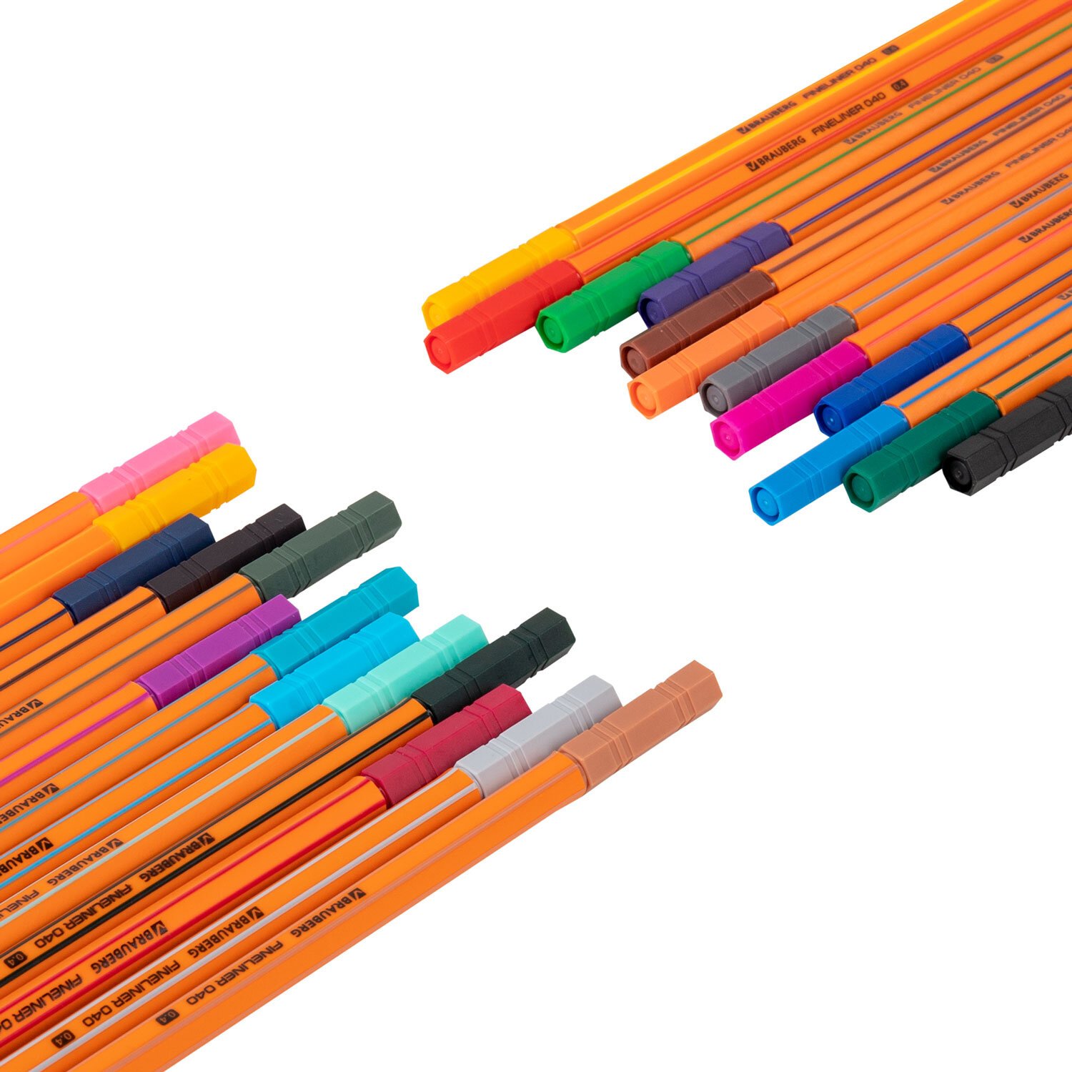 Ручки капиллярные (линеры) 40 ЦВЕТОВ, BRAUBERG "FINE 040", шестигранные, линия 0,4 мм, 144146