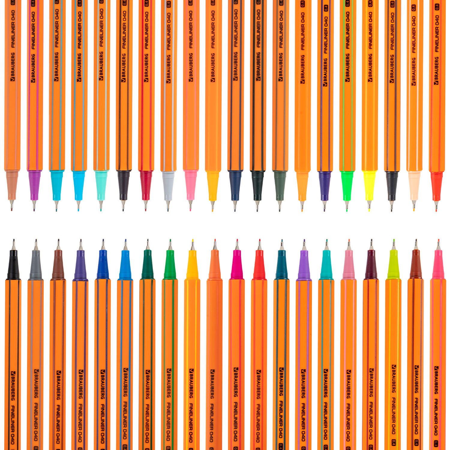 Набор капиллярных ручек BRAUBERG "FINE 040" состоит из 40 ярких цветов: желтый, оранжевый, розовый, красный, светло-зеленый, зеленый, голубой, синий, фиолетовый, коричневый, серый, черный, сиреневый, морская волна, небесно-голубой, мятный, черное дерево, винный, светло-серый, светло-коричневый, светло-розовый, темно-синий, пурпурный, темно-серый, баклажановый, сливовый, бежевый, сине-зеленый, виноградный, маджента, янтарный, светло-желтый, сине-серый, темно-коричневый, изумрудный, травяной, бледно-розовый.