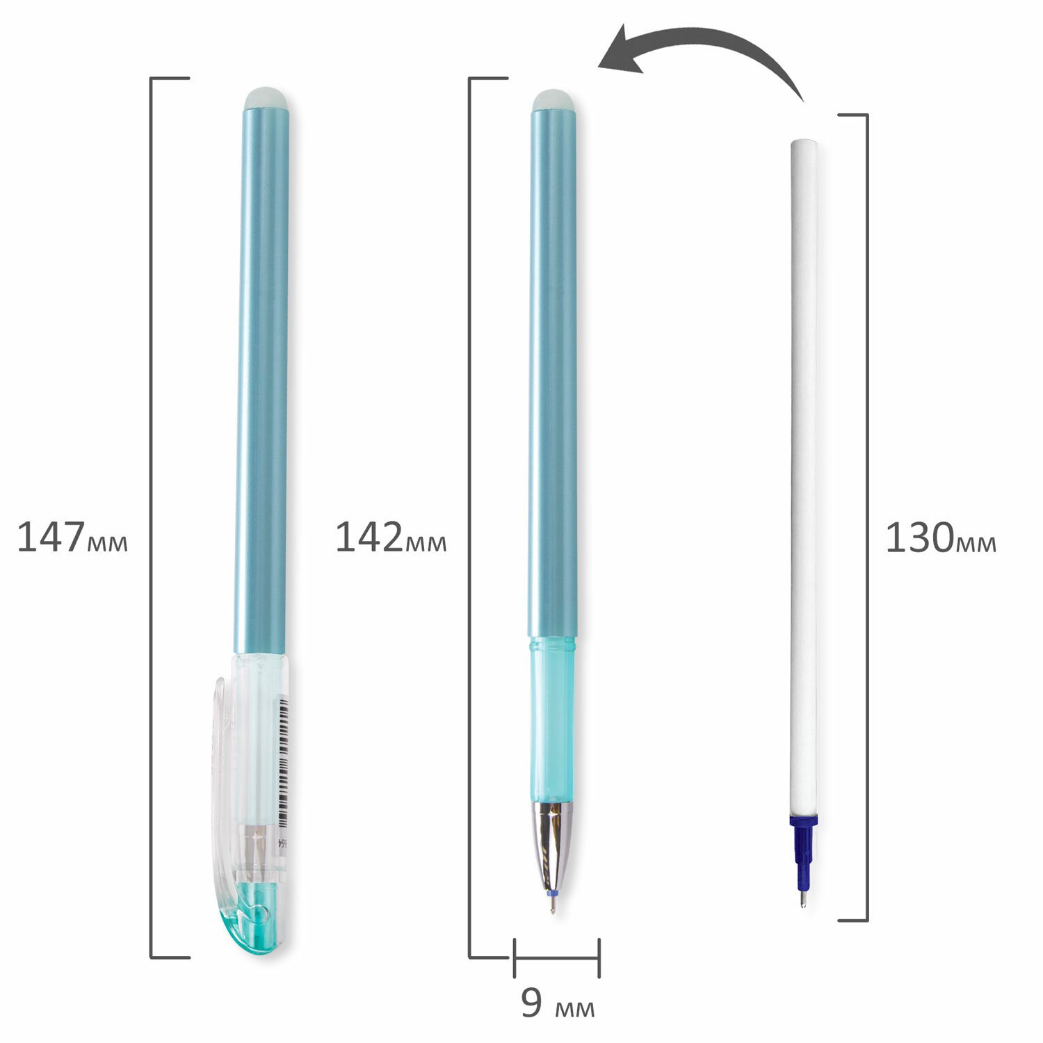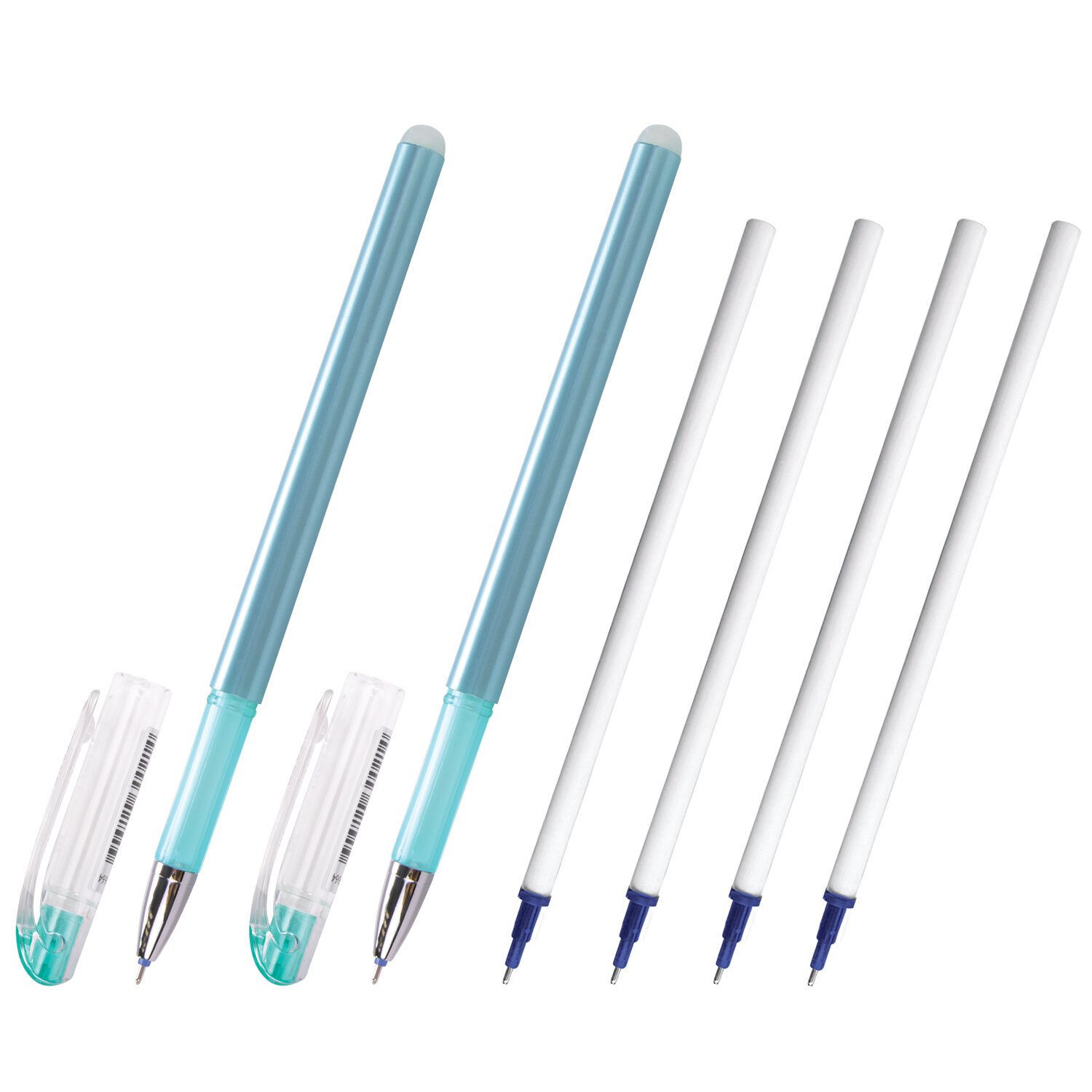 Стираемые гелевые ручки в круглом корпусе. Сменный стержень длиной 130 мм с игольчатым наконечником позволит использовать ручки максимально долго. Диаметр пишущего узла, равный 0,5 мм, создает линию письма, равную 0,38 мм. Имеется возможность многократного стирания. Набор включает 2 ручки и 4 сменных стержня с синими стираемыми чернилами.