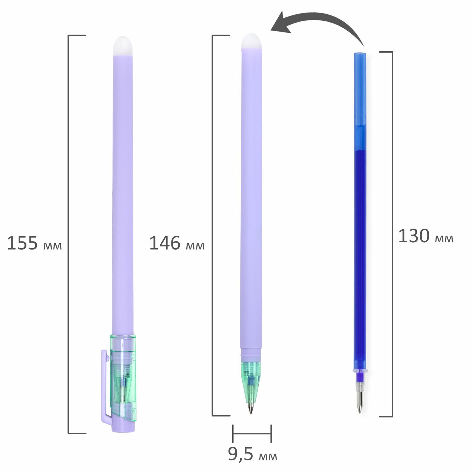 Ручка имеет круглый прорезиненный корпус в цвете ассорти нежных оттенков. Наконечник стандартный. Длина сменного стержня составляет 130 мм. Диаметр пишущего узла, равный 0,5 мм, создает линию письма, равную 0,35 мм. Возможность многократного стирания и повторного письма. Цвет чернил - синий. В наборе 4 ручки.