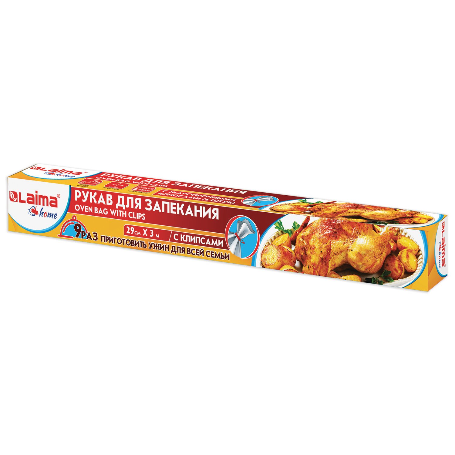 Рукав для запекания с клипсами LAIMA идеально подойдет для приготовления мяса, рыбы и овощей в духовых шкафах и микроволновых печах (в режиме СВЧ) без использования жира.