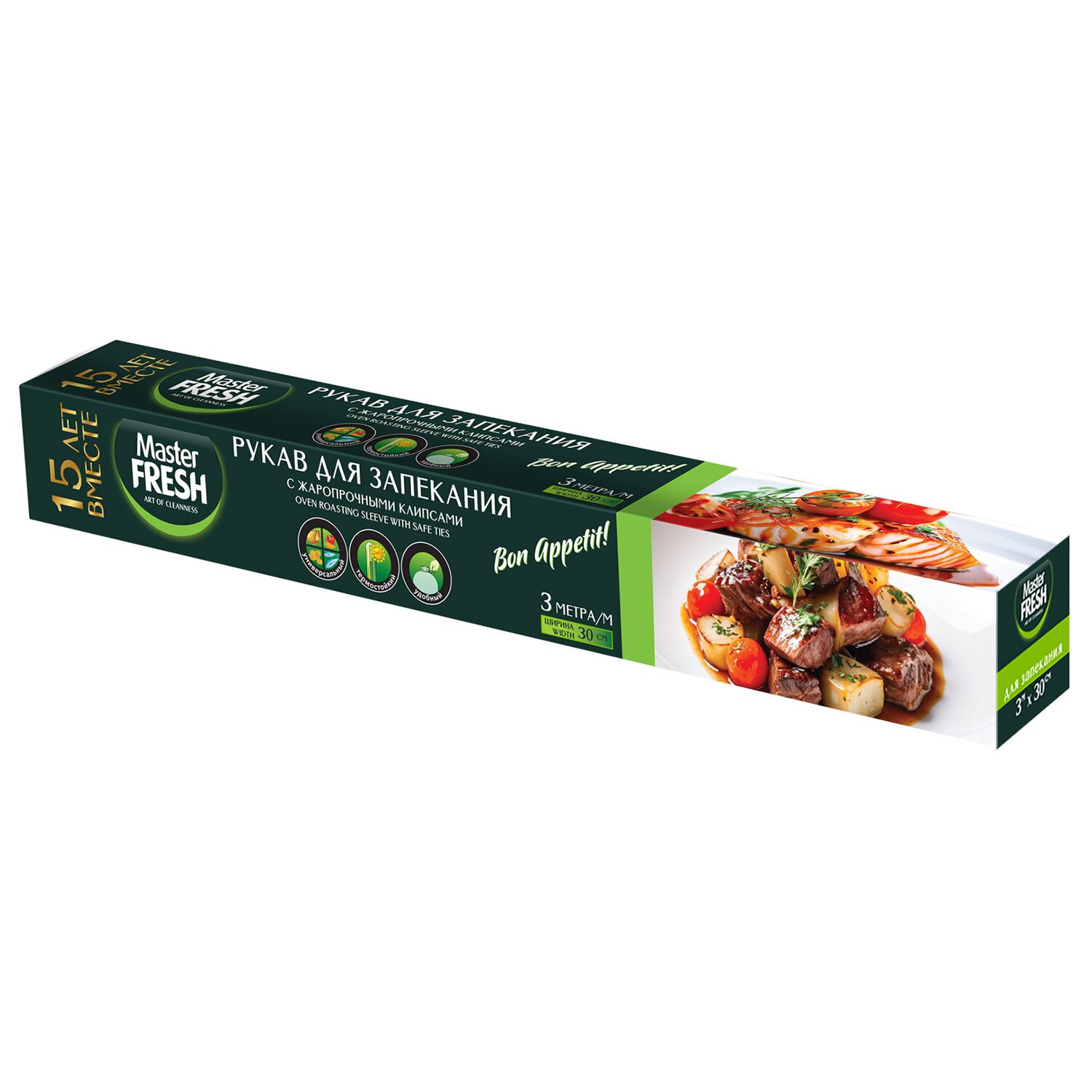 Рукав для запекания с жаропрочными клипсами в коробке, 3 м, Master FRESH, ШК3213