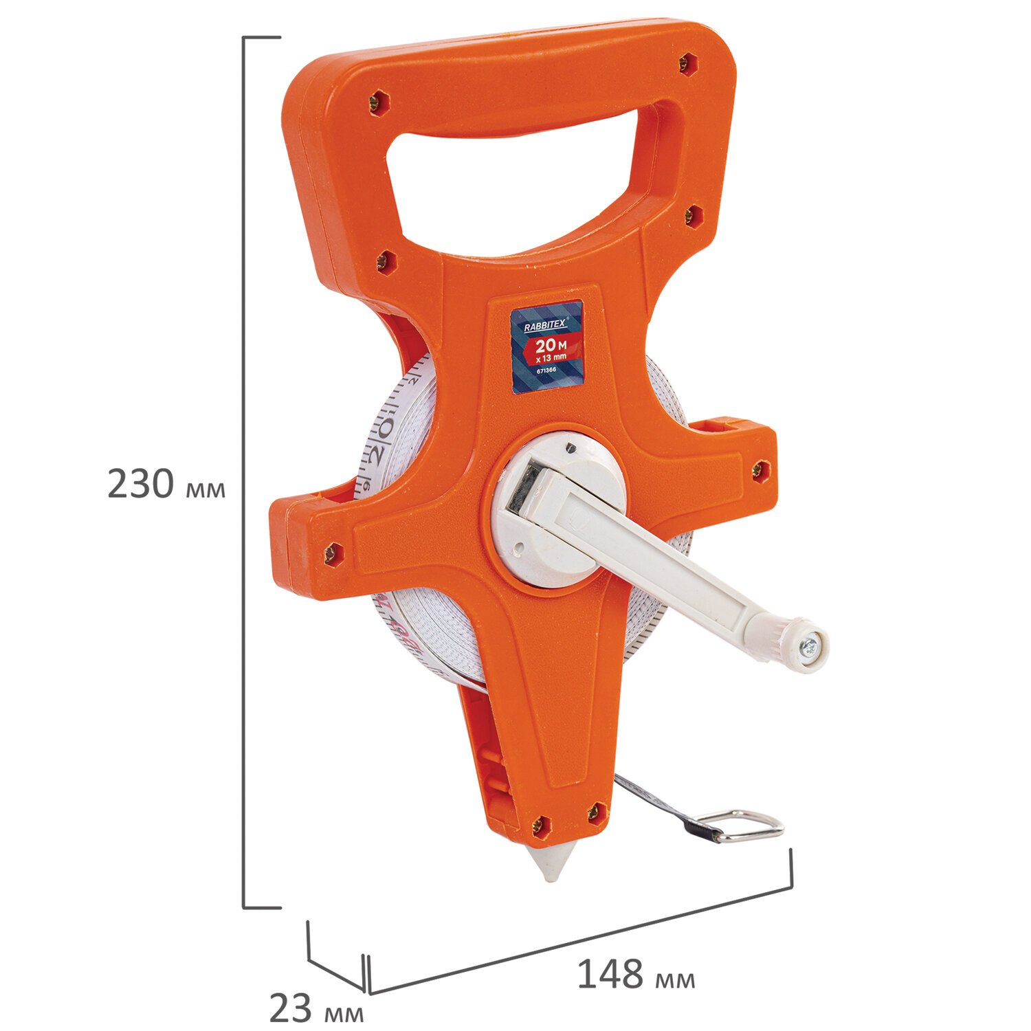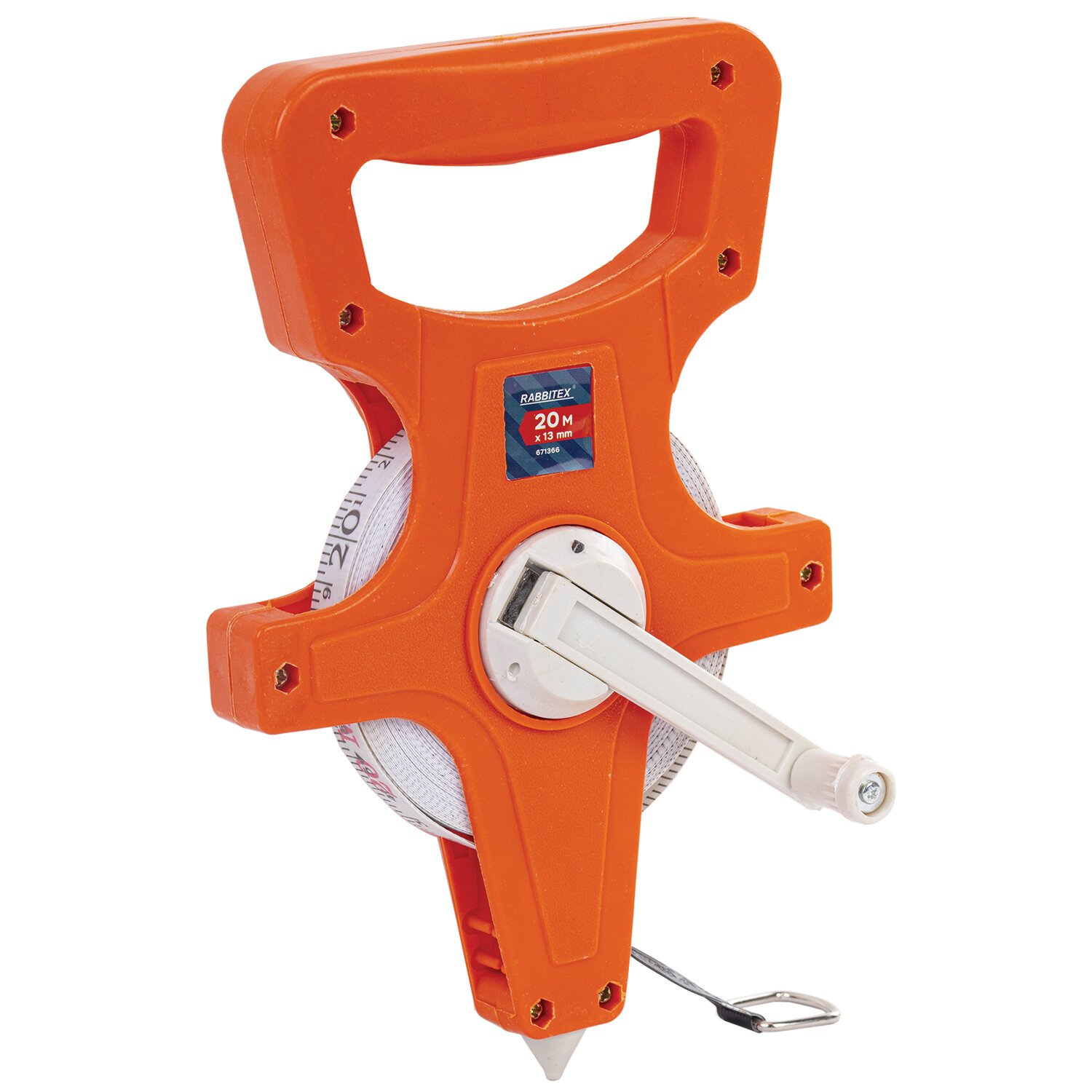Рулетка геодезическая 20м х 13мм, лента фибергласс, открытый корпус, RABBITEX, 671366