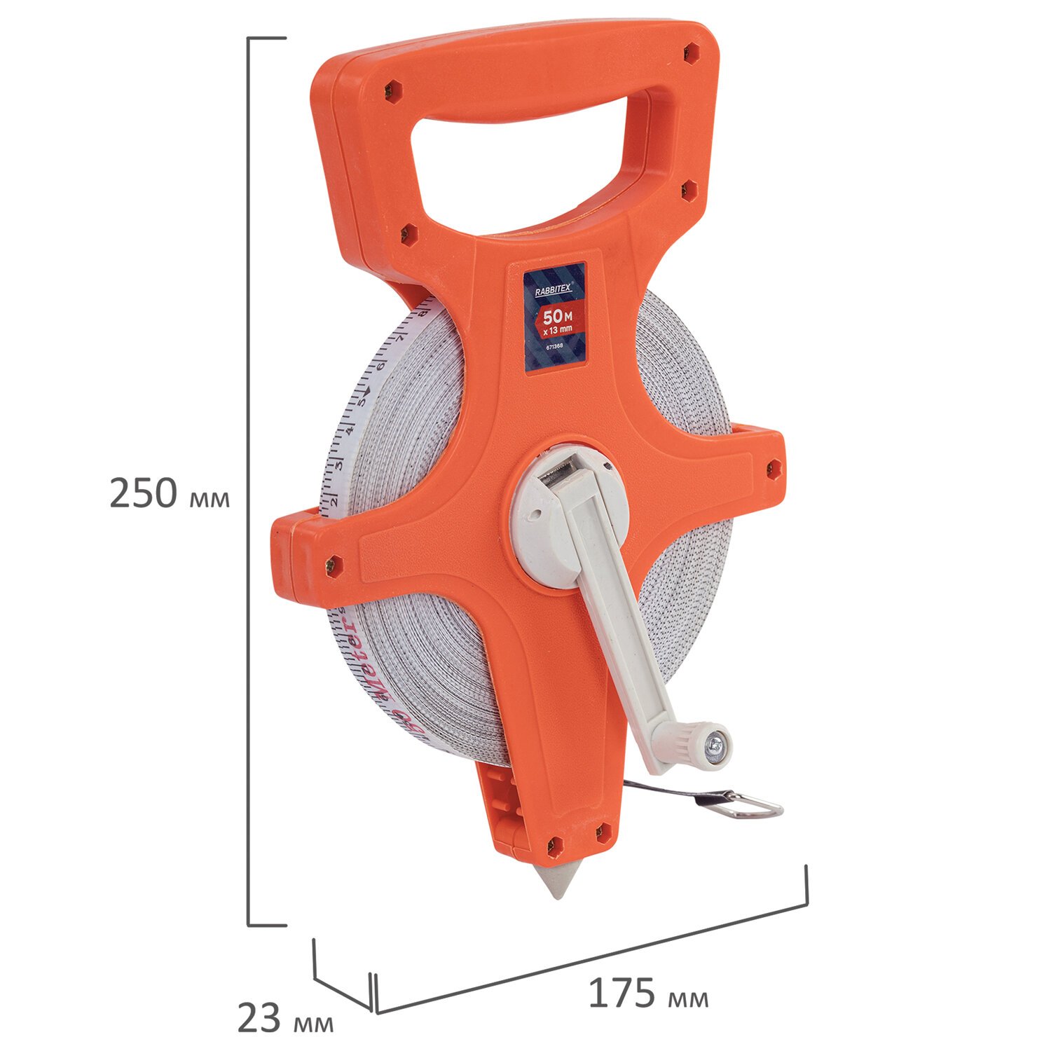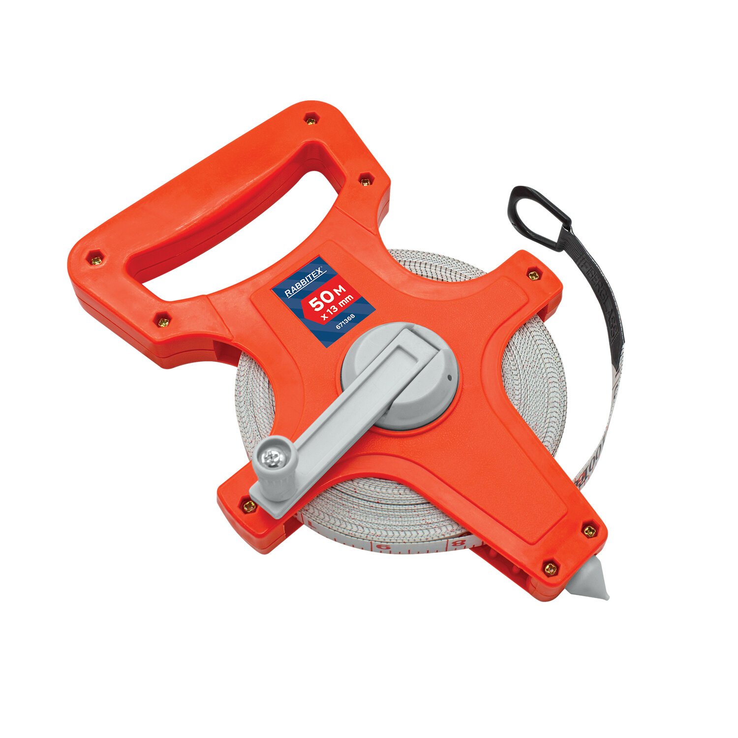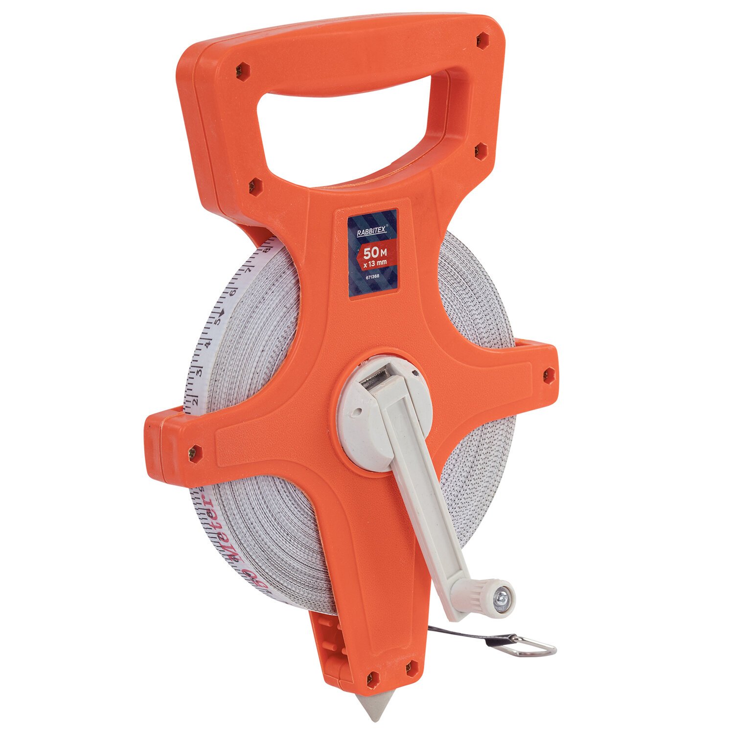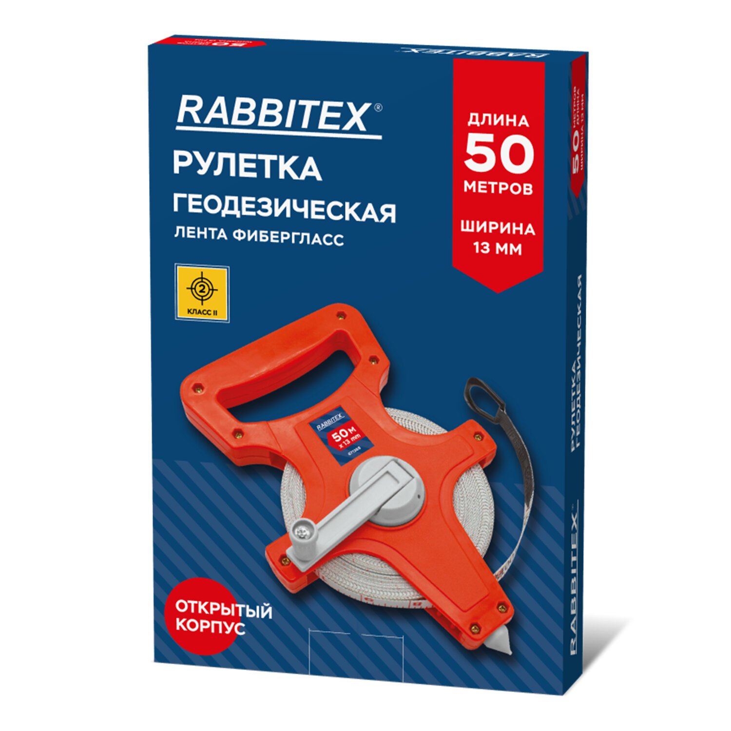 Рулетка геодезическая 50м х 13мм, лента фибергласс, открытый корпус, RABBITEX, 671368