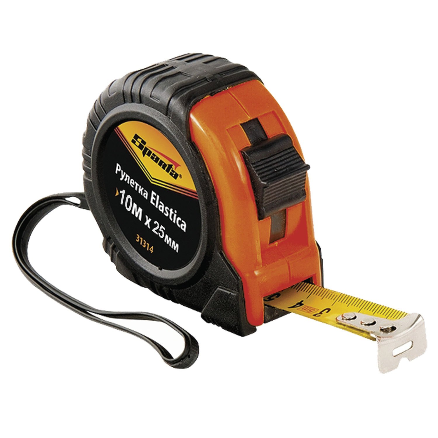 Рулетка измерительная 10,0 м х 25 мм, SPARTA "Elastica", обрезиненный корпус, 31314