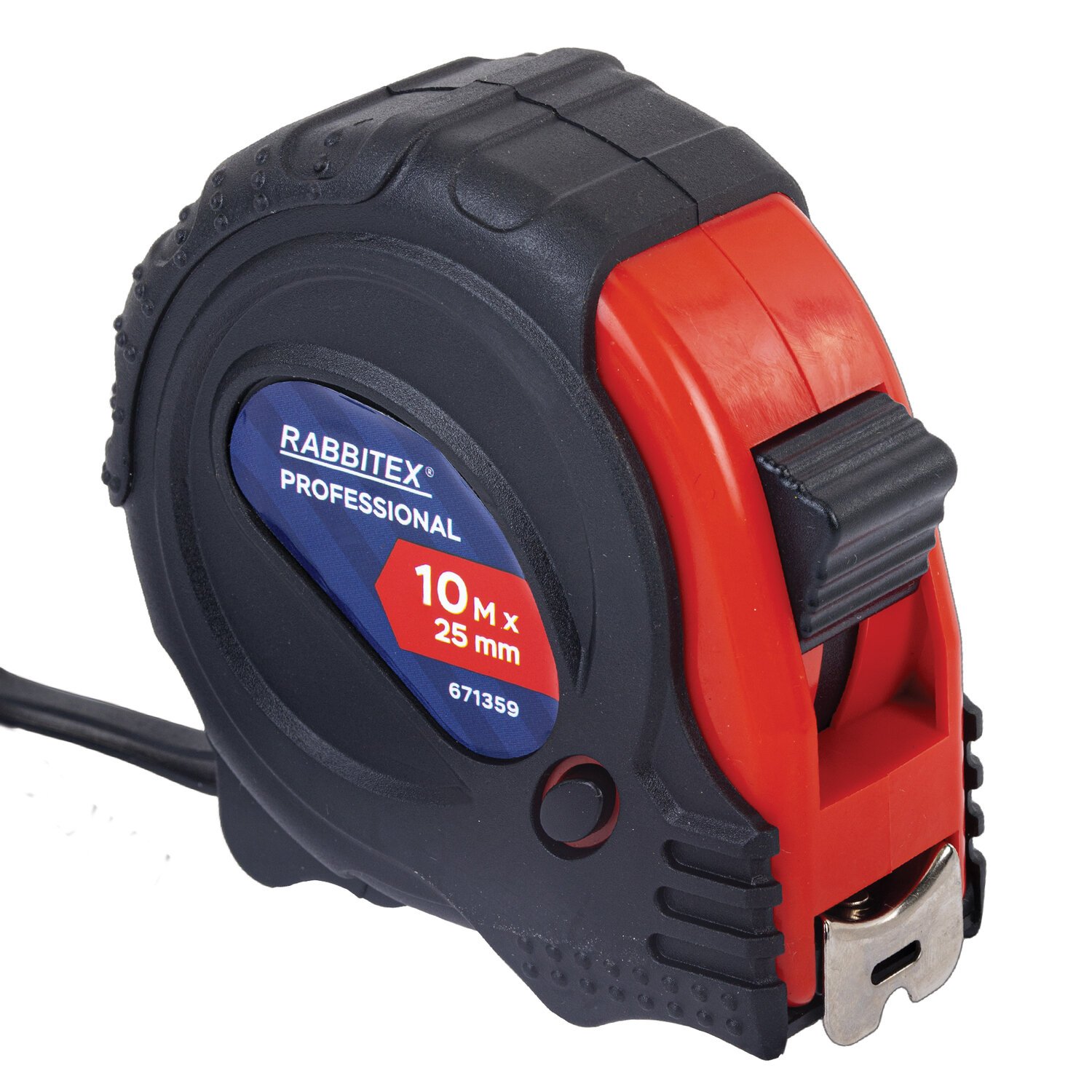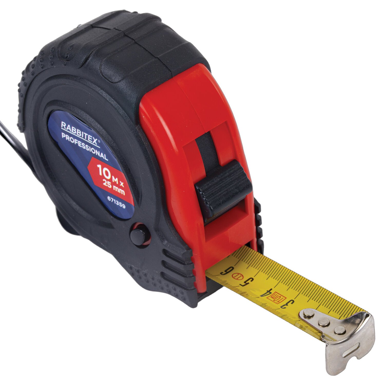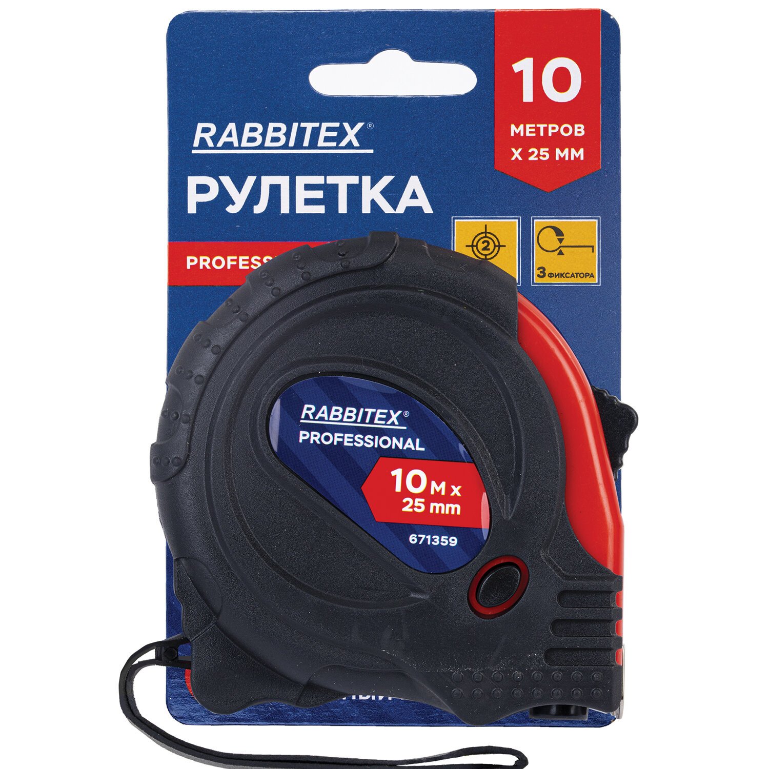Рулетка измерительная 10м х 25мм, обрезиненный корпус, 3 фиксатора, RABBITEX Professional, 671359