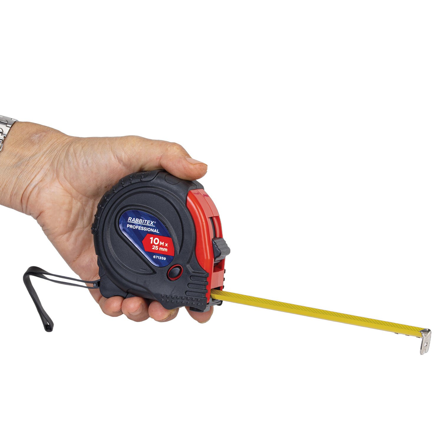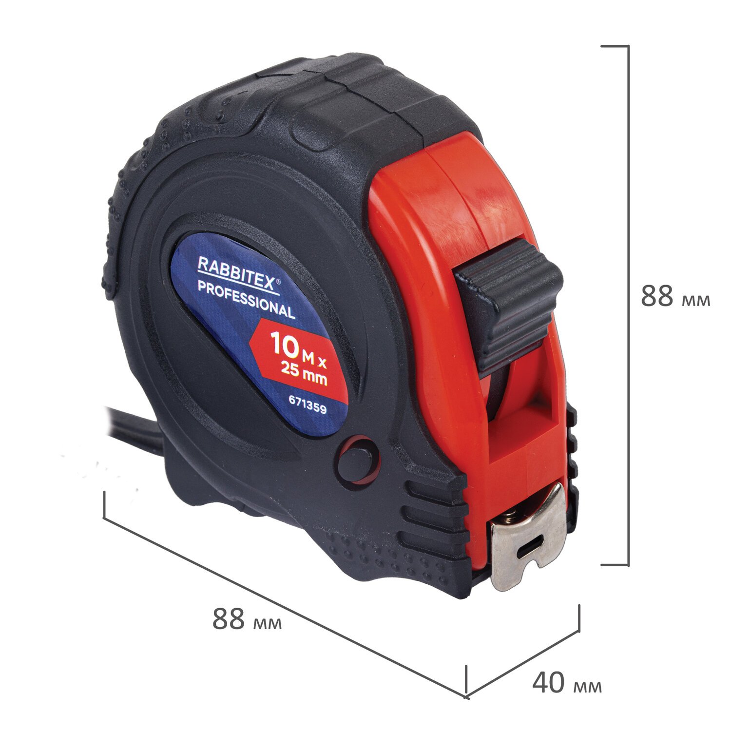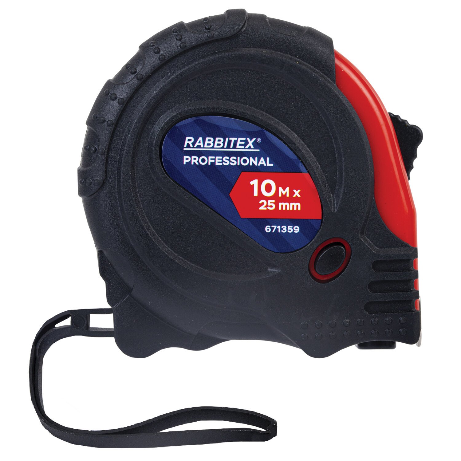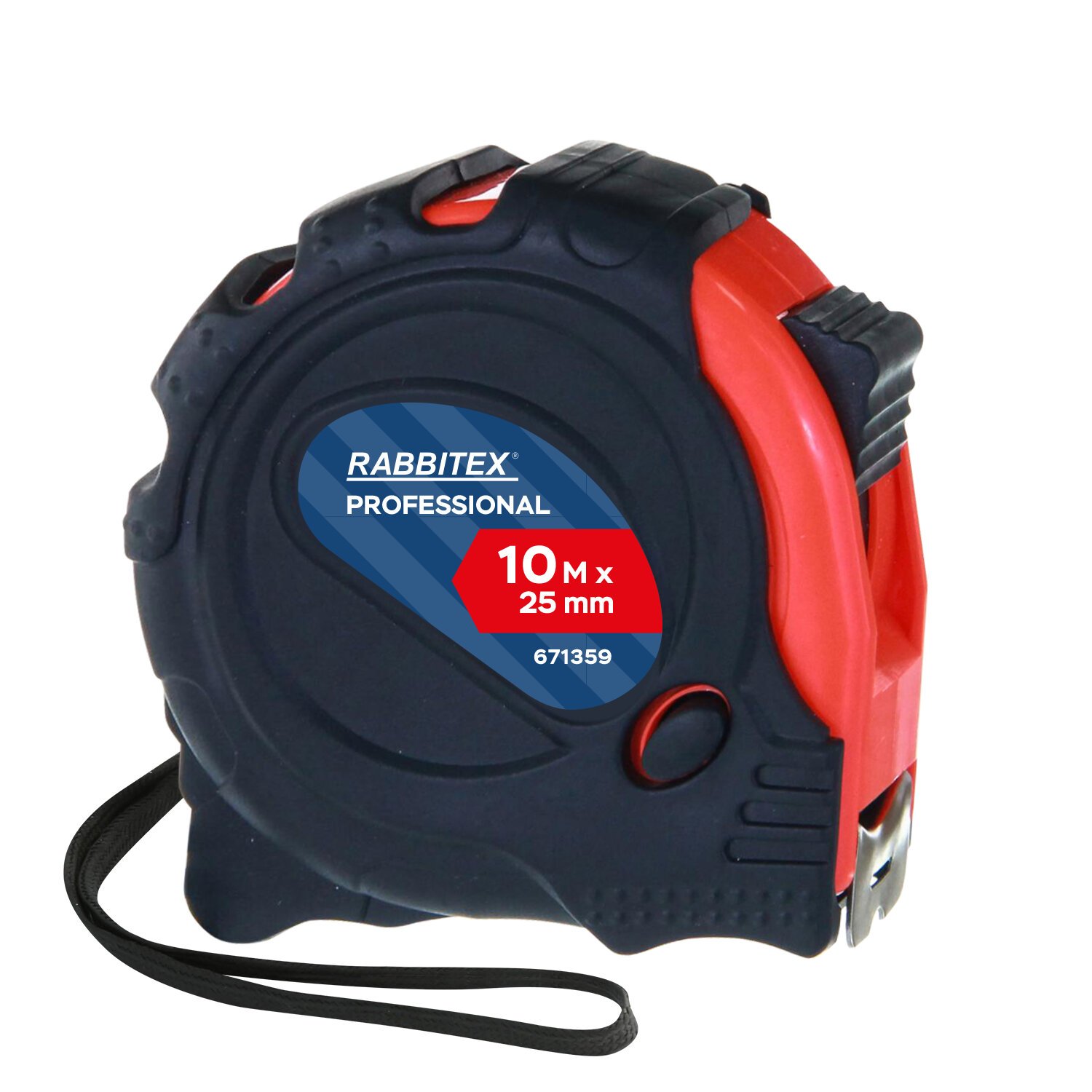 Рулетка измерительная 10м х 25мм, обрезиненный корпус, 3 фиксатора, RABBITEX Professional, 671359