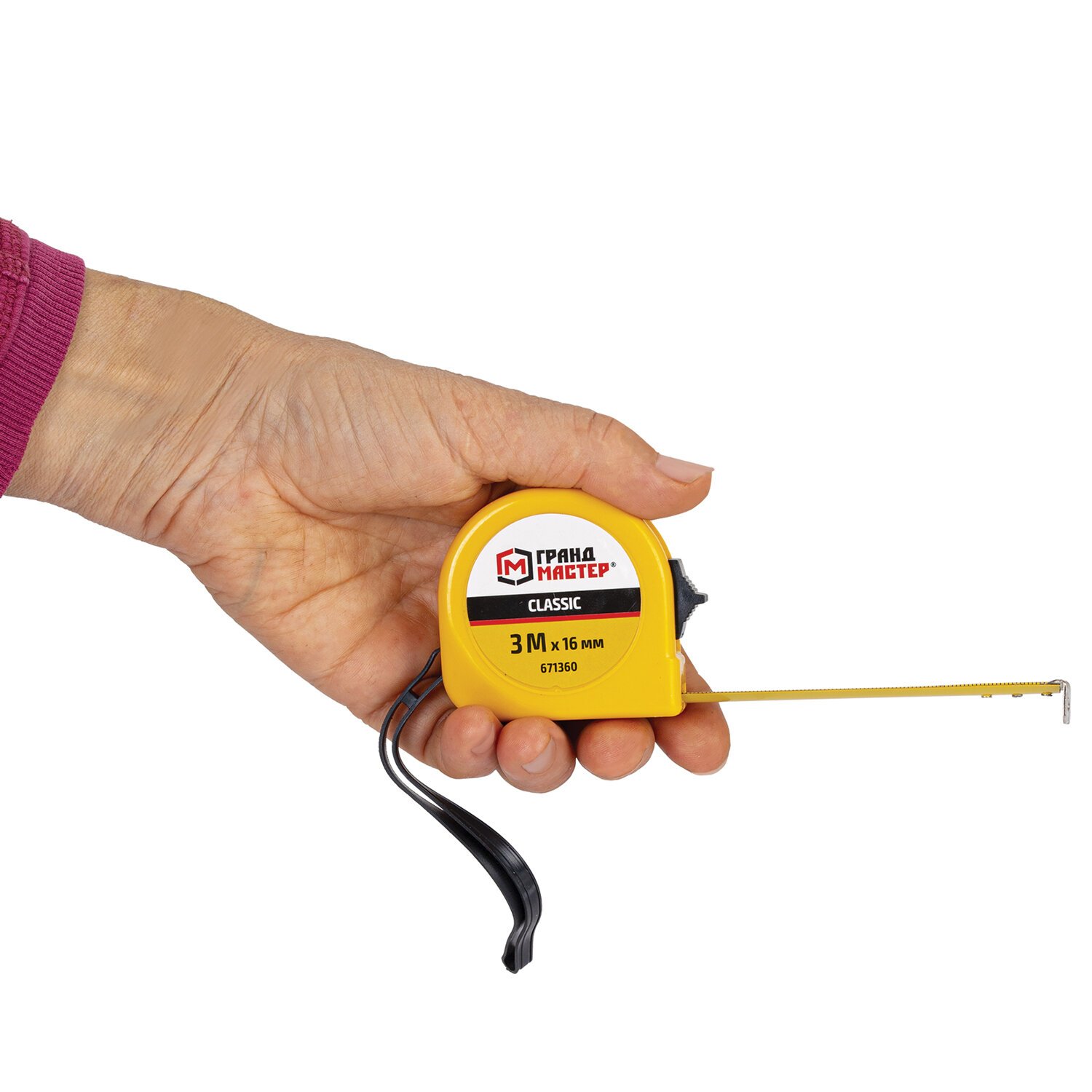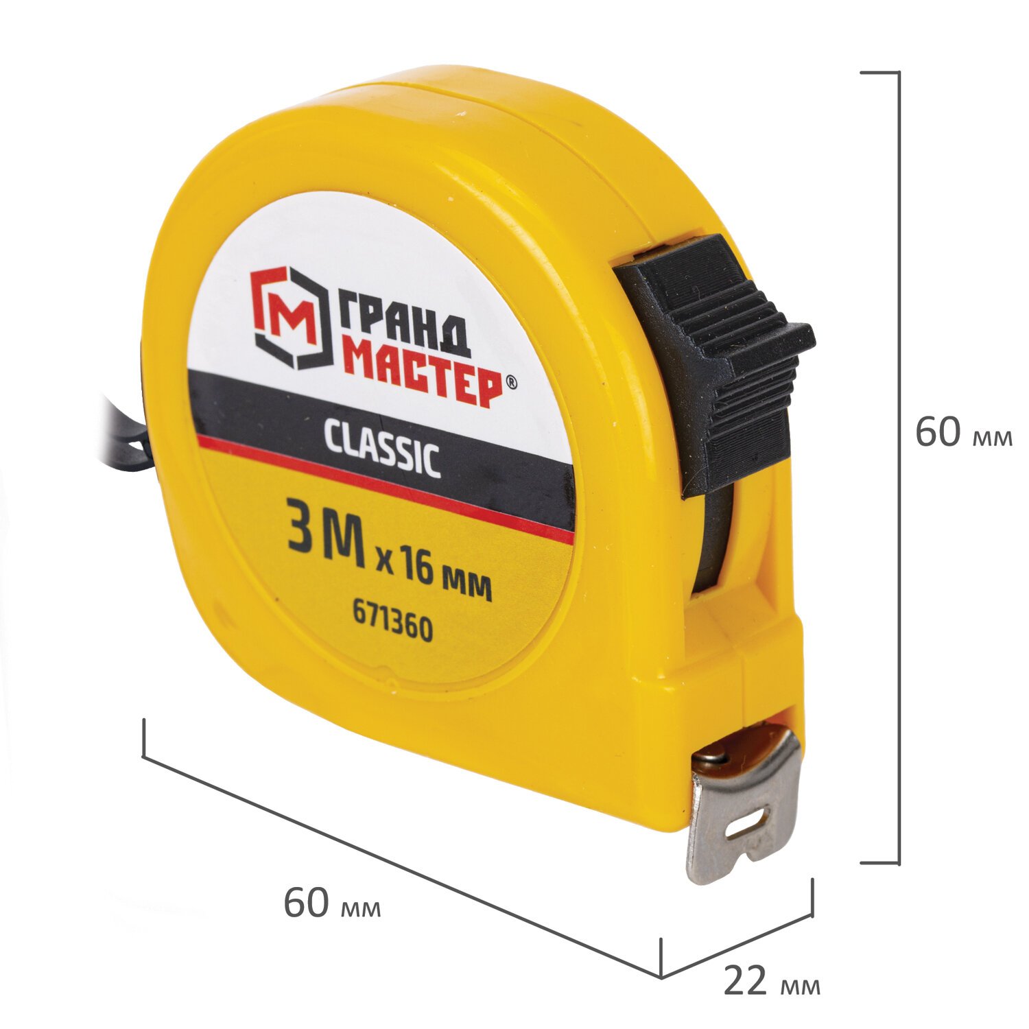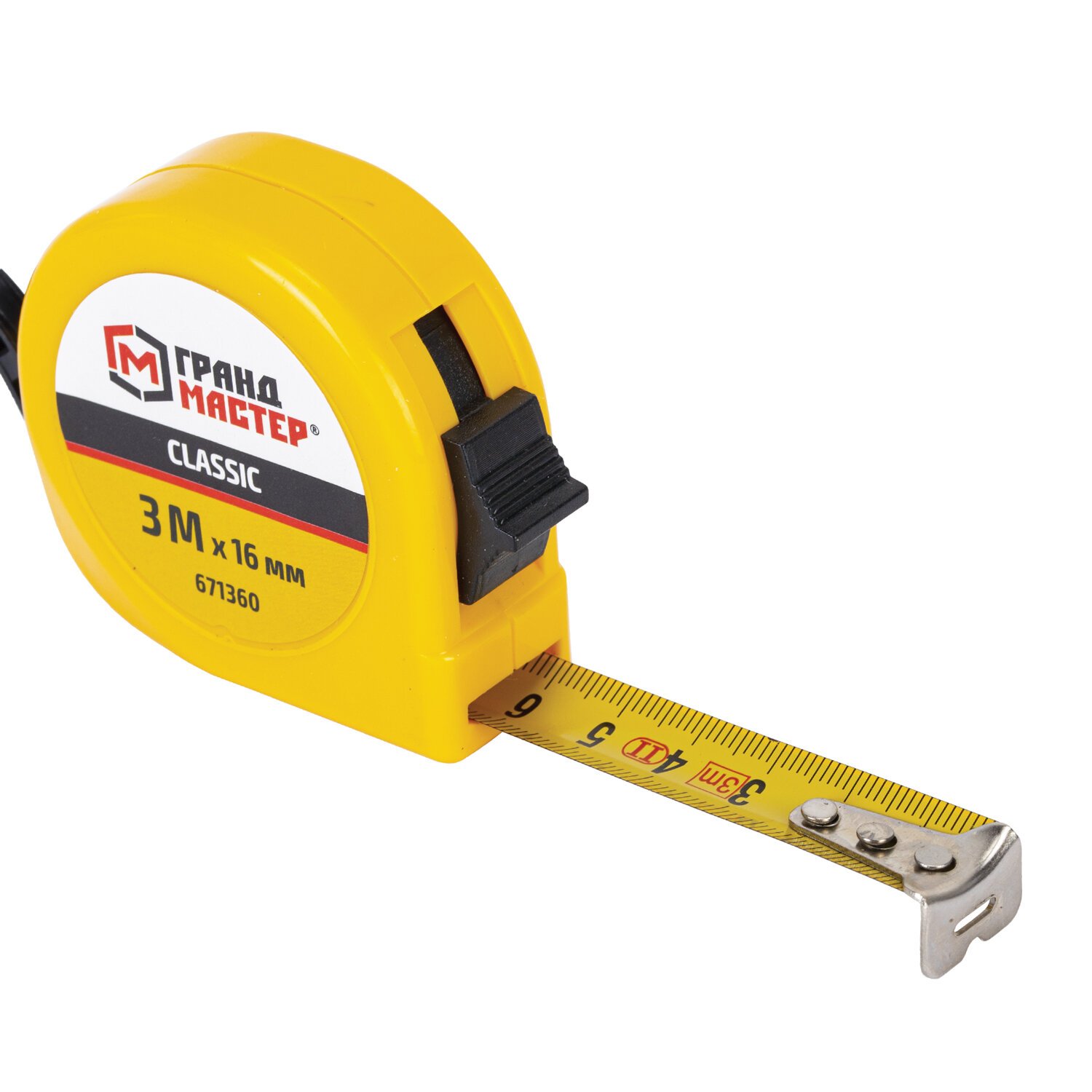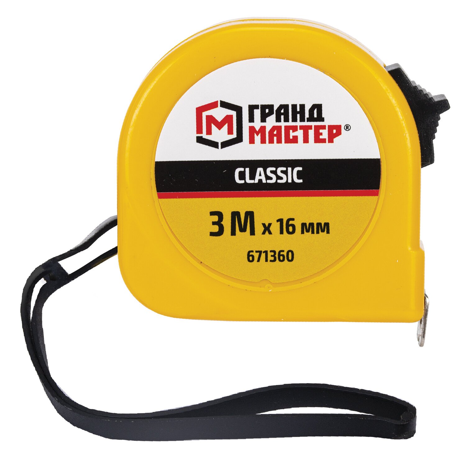 Рулетка измерительная 3 м х 16 мм, пластиковый корпус, с фиксатором, ГРАНДМАСТЕР Classic, 671360