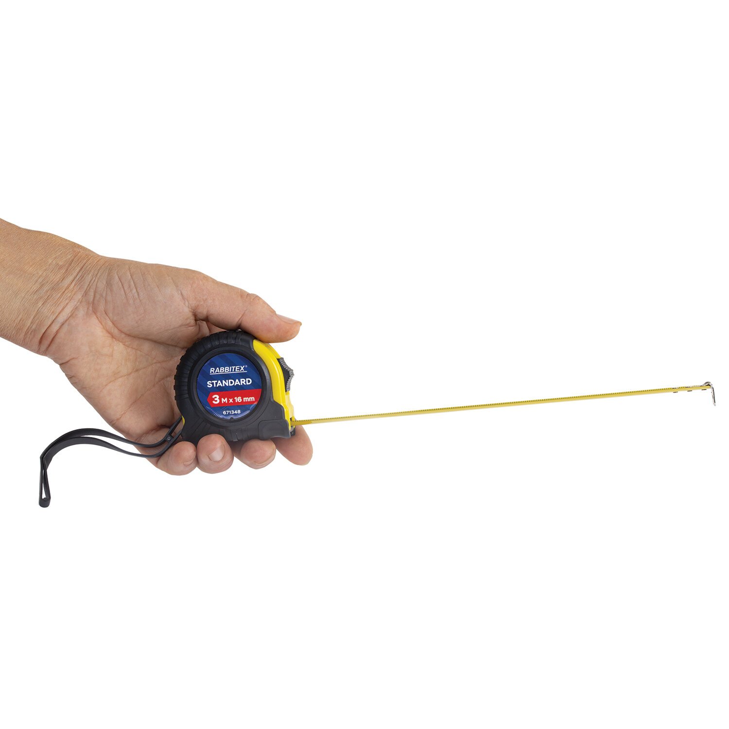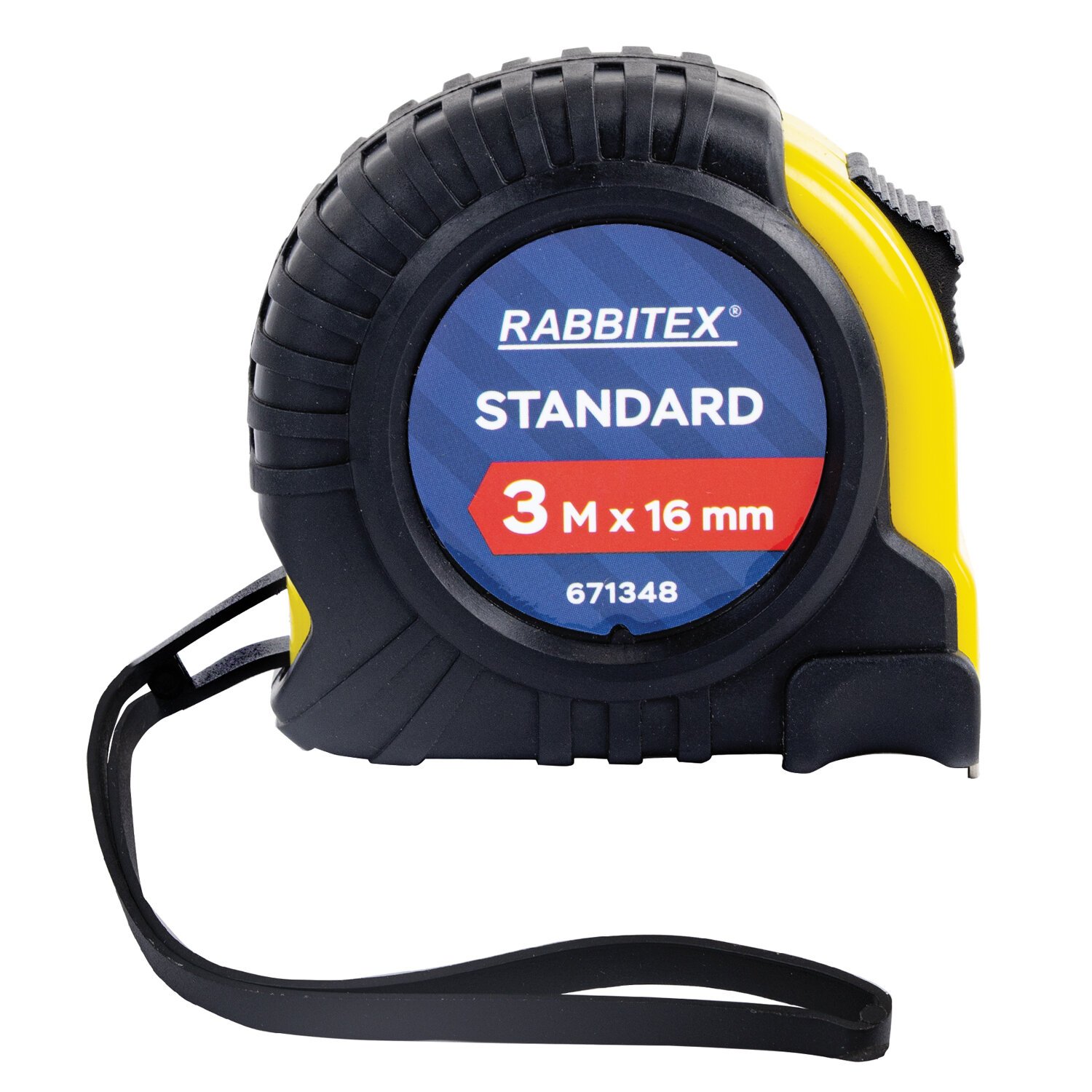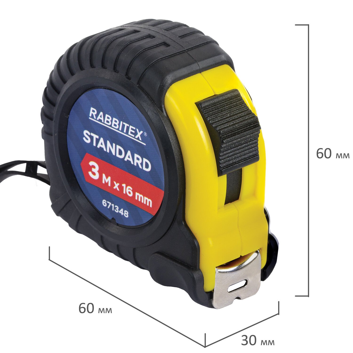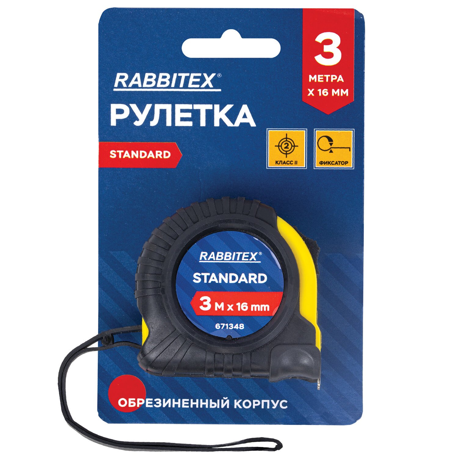 Рулетка измерительная 3м х 16мм, обрезиненный корпус, 3 фиксатора, RABBITEX Professional, 671356