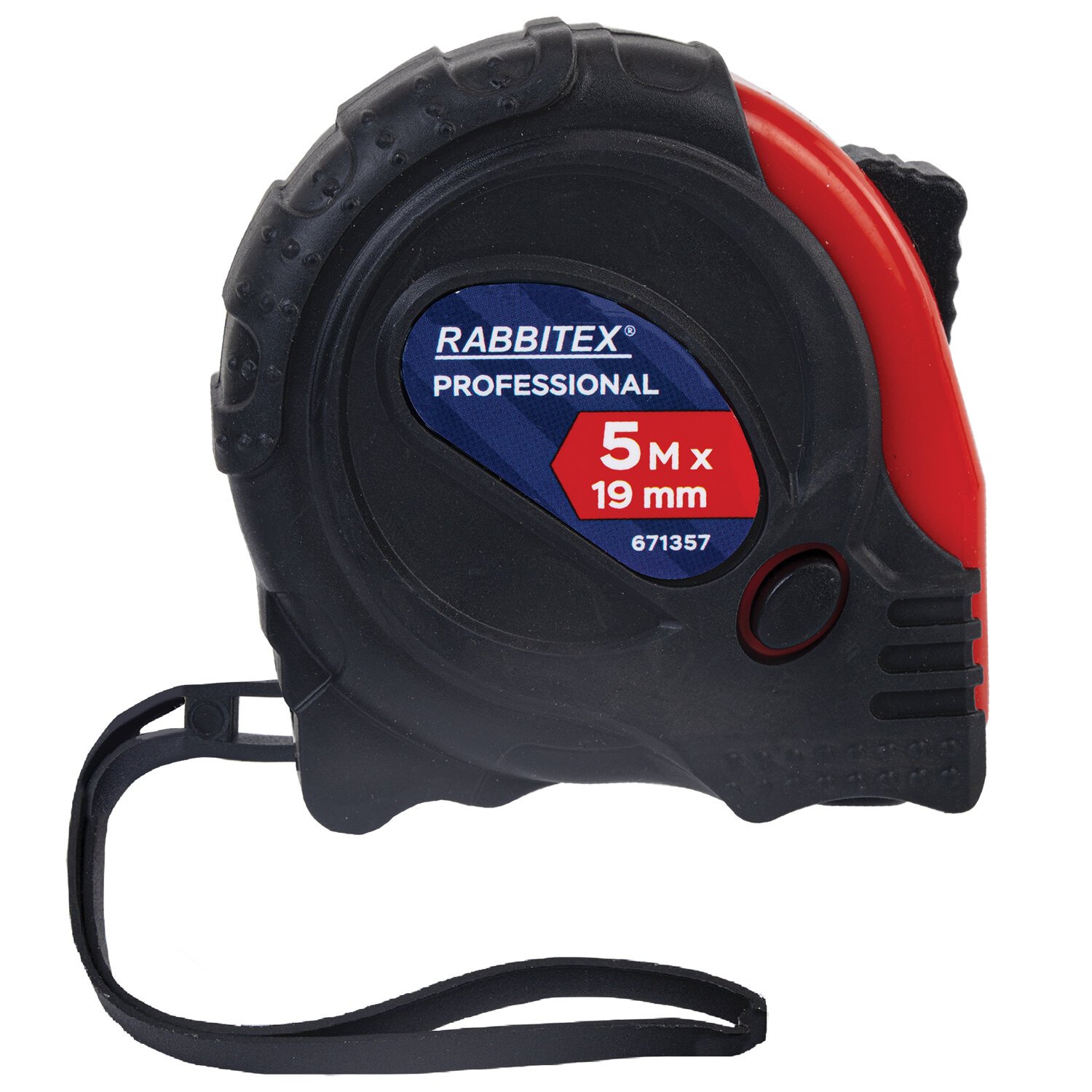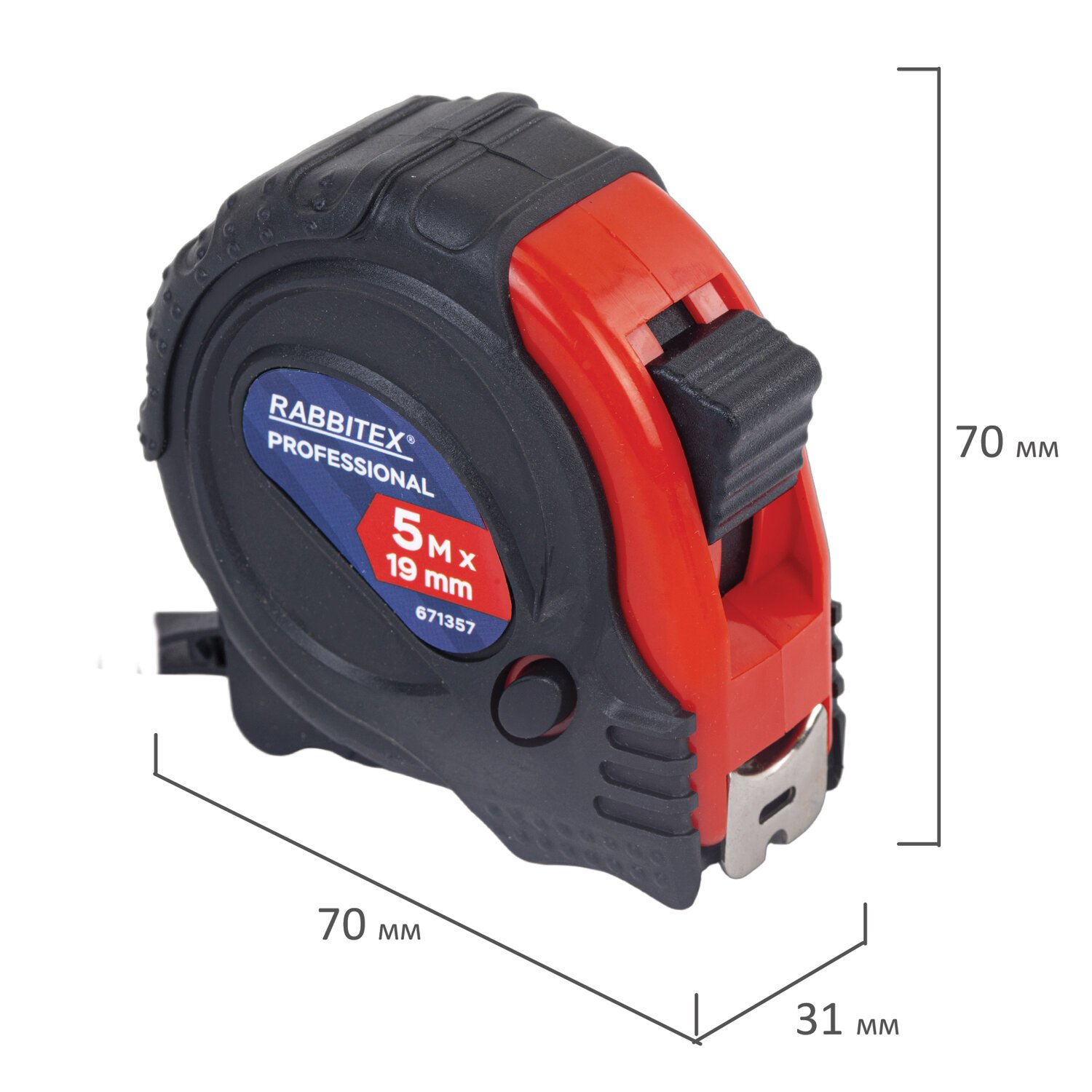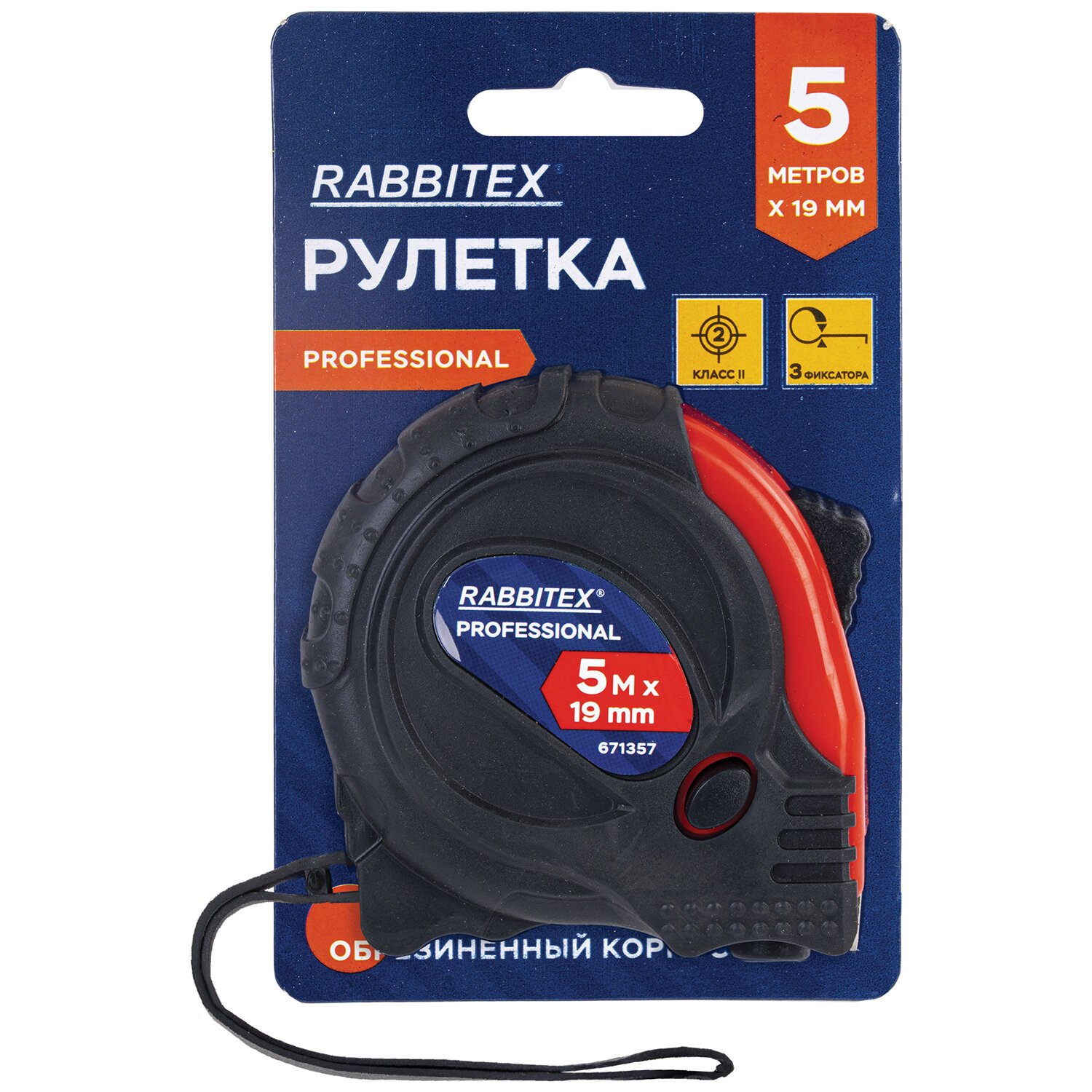 Рулетка измерительная 5м х 19мм, обрезиненный корпус, 3 фиксатора, RABBITEX Professional, 671357