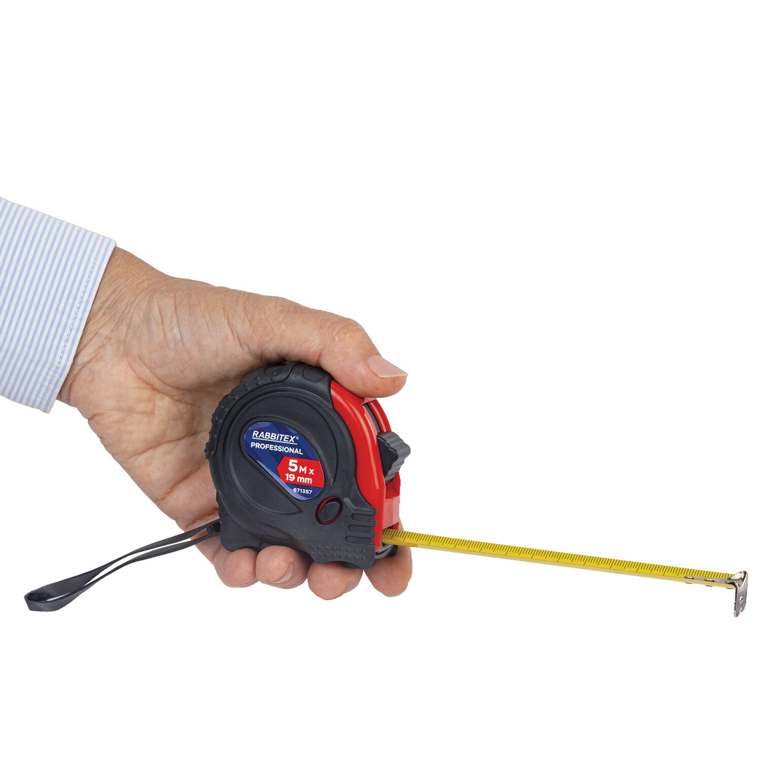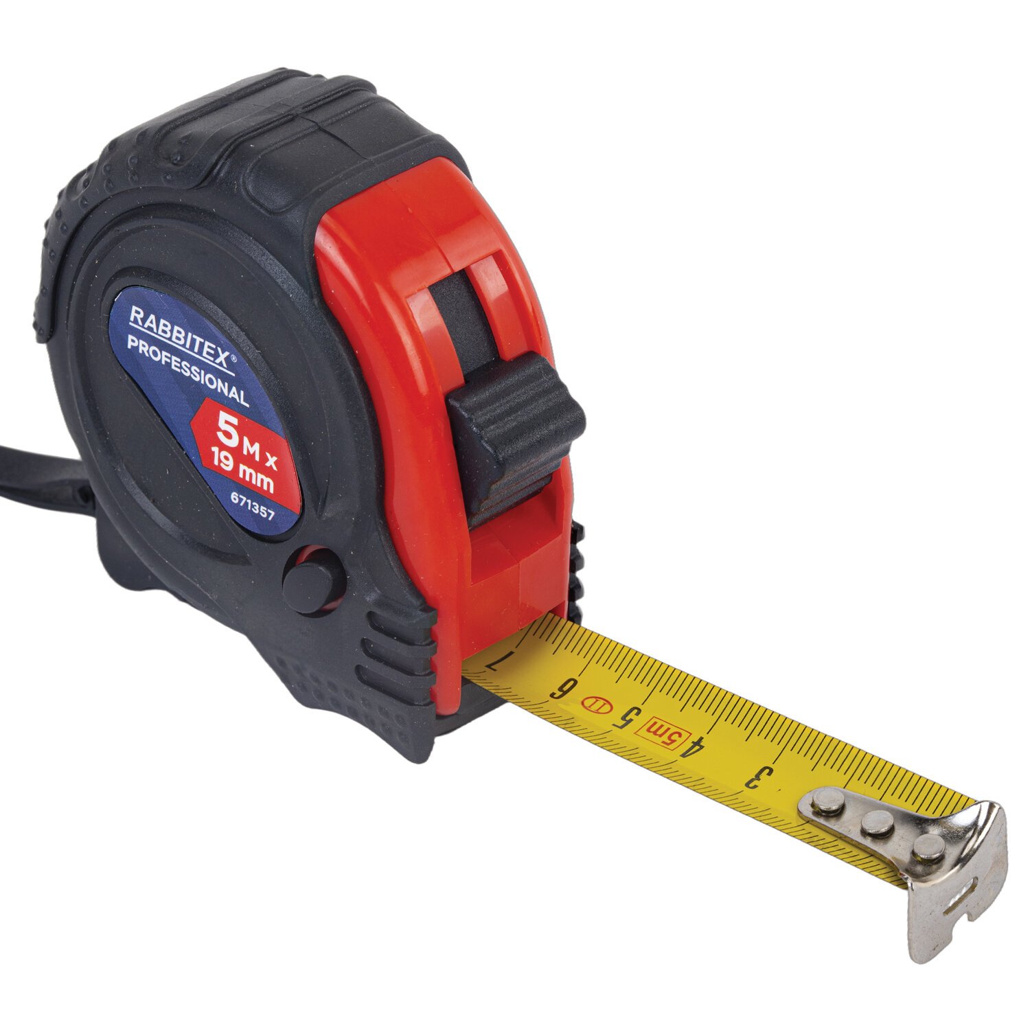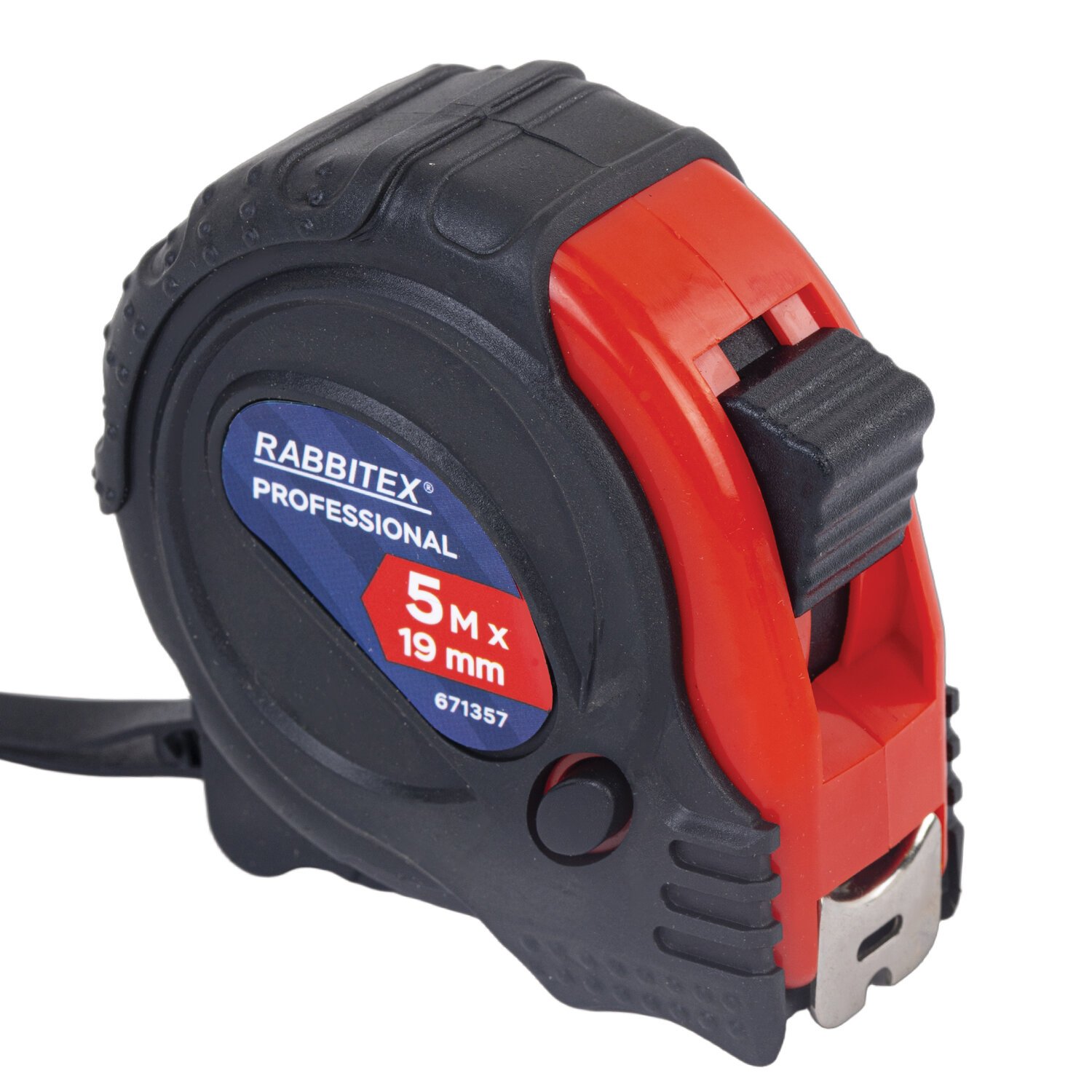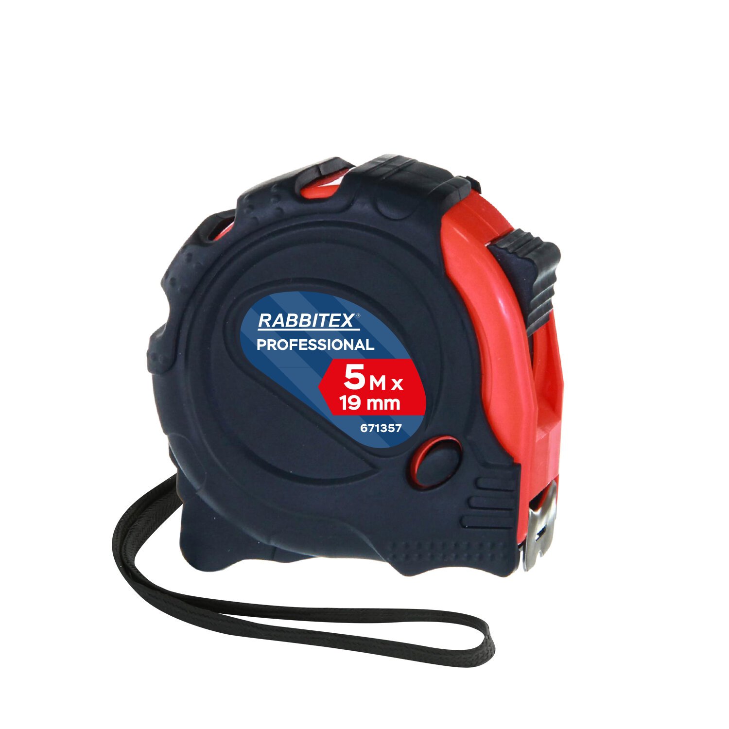 Рулетка измерительная 5м х 19мм, обрезиненный корпус, 3 фиксатора, RABBITEX Professional, 671357