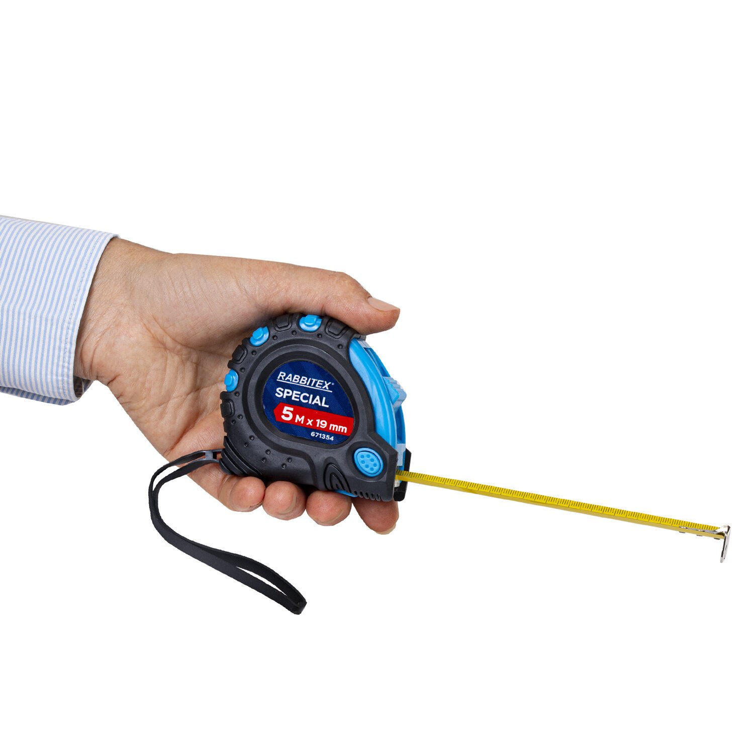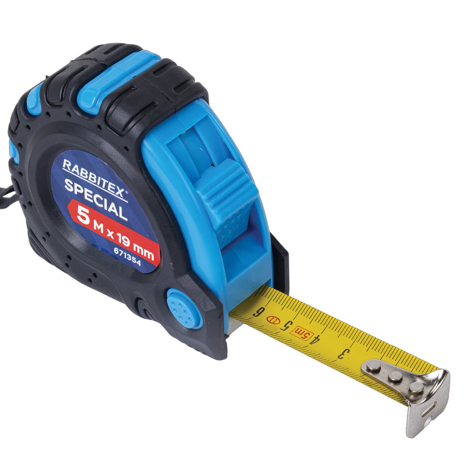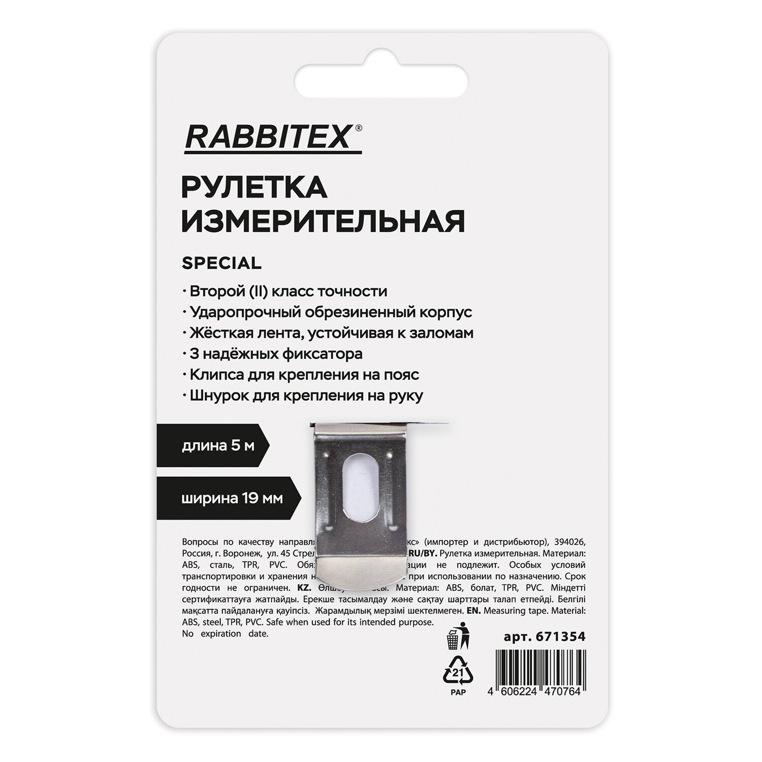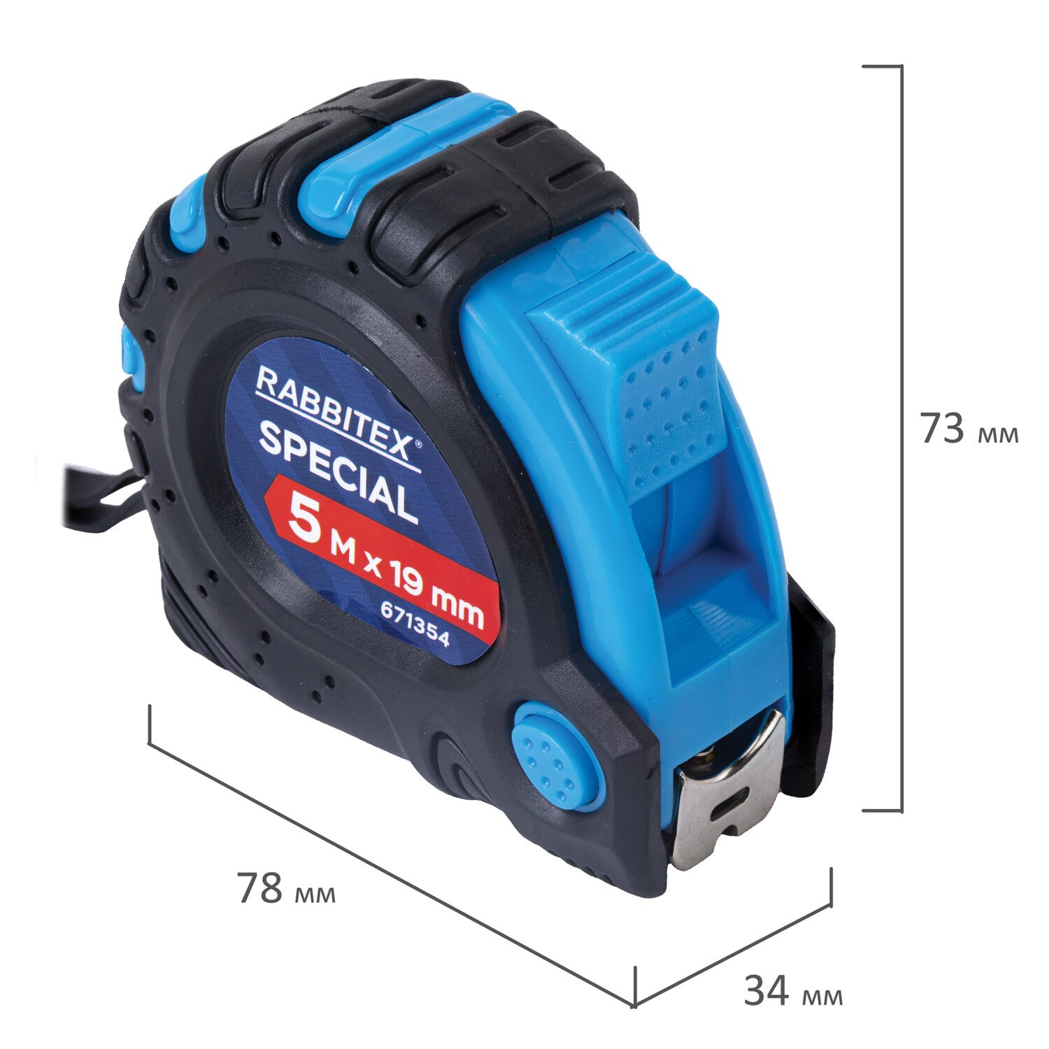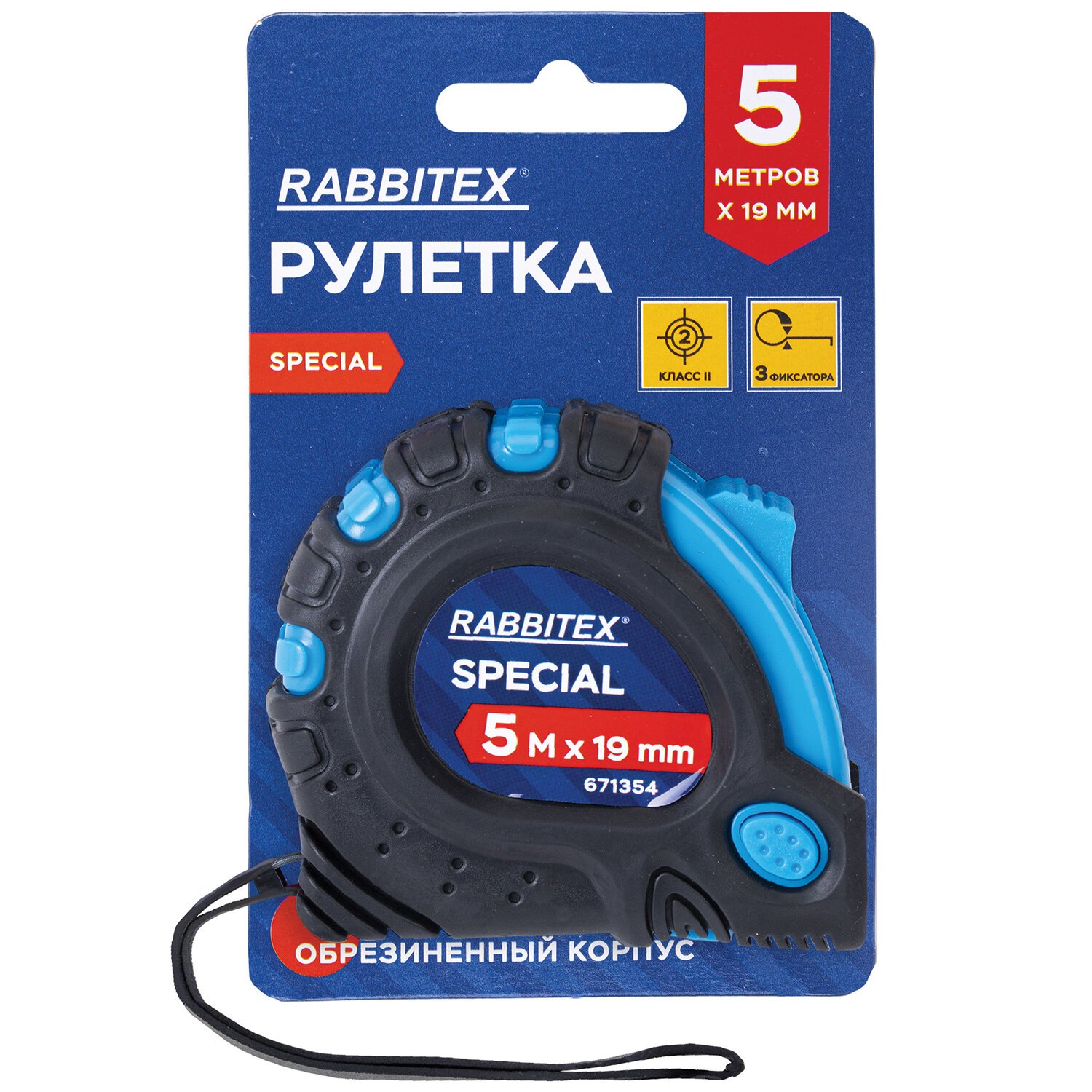 Рулетка измерительная 5м х 19мм, обрезиненный корпус, 3 фиксатора, RABBITEX Special, 671354