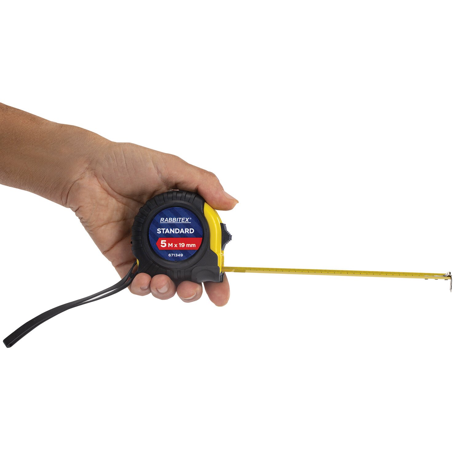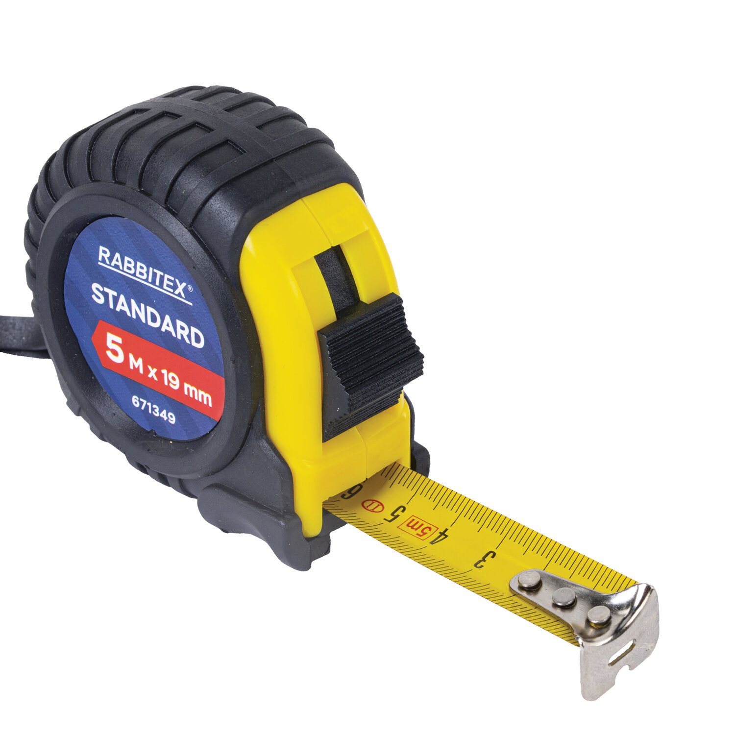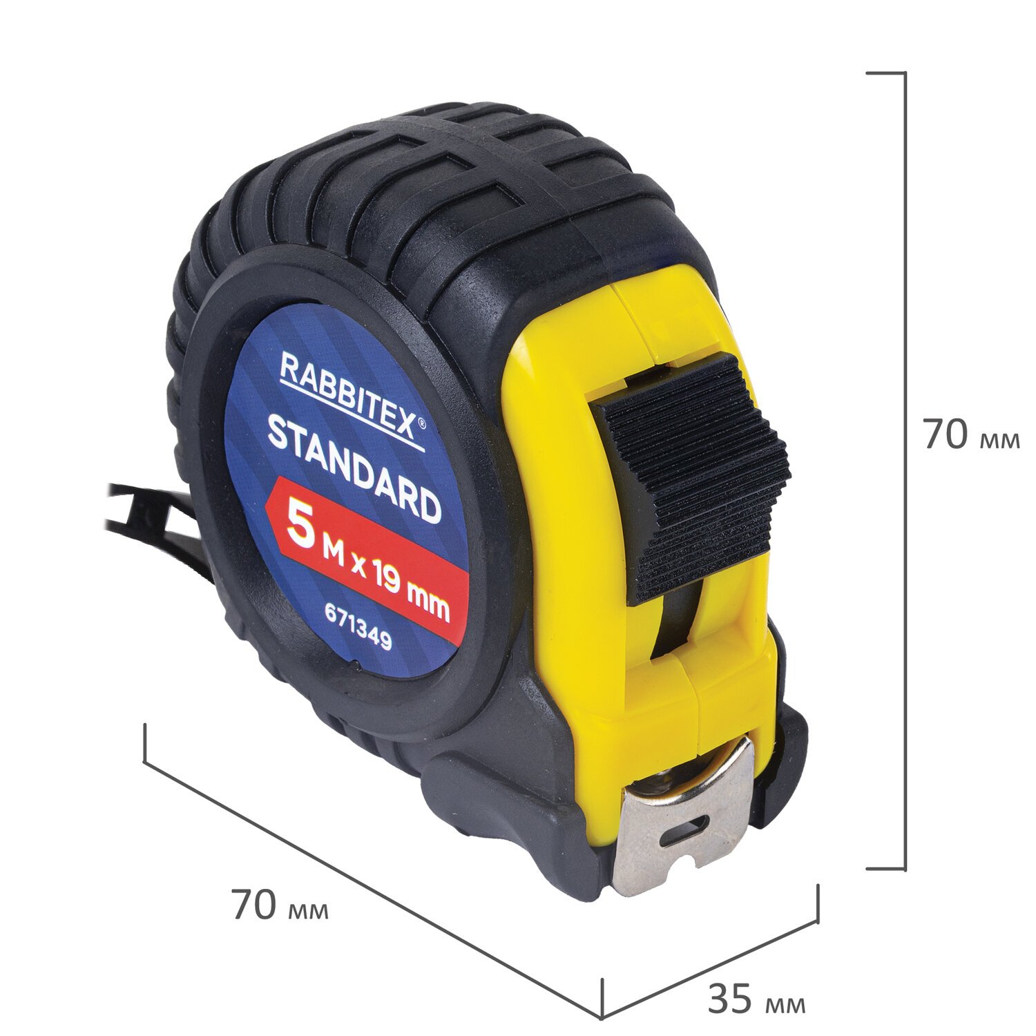 Рулетка измерительная 5м х 19мм, обрезиненный корпус, с фиксатором, RABBITEX Standard, 671349