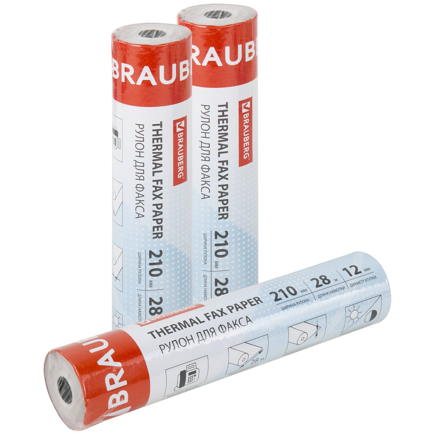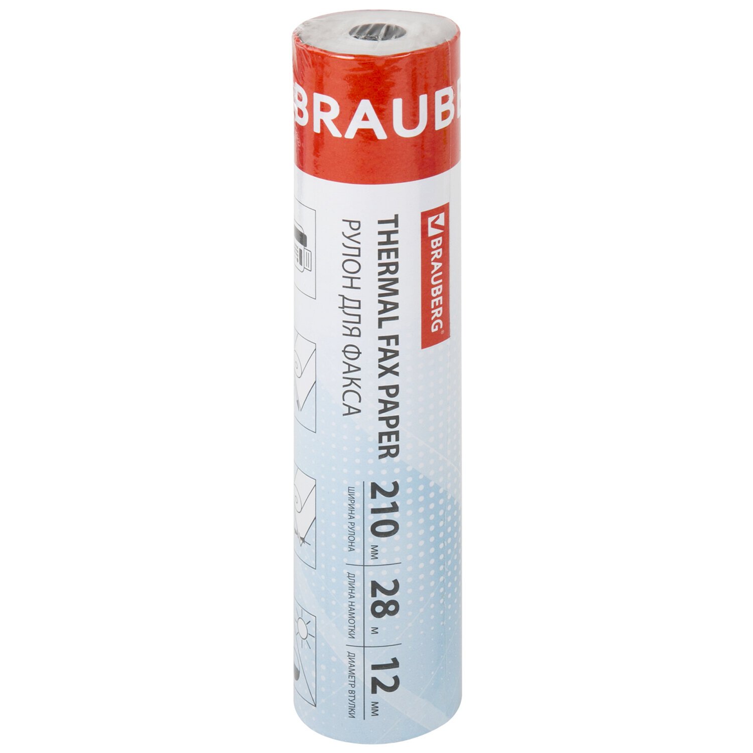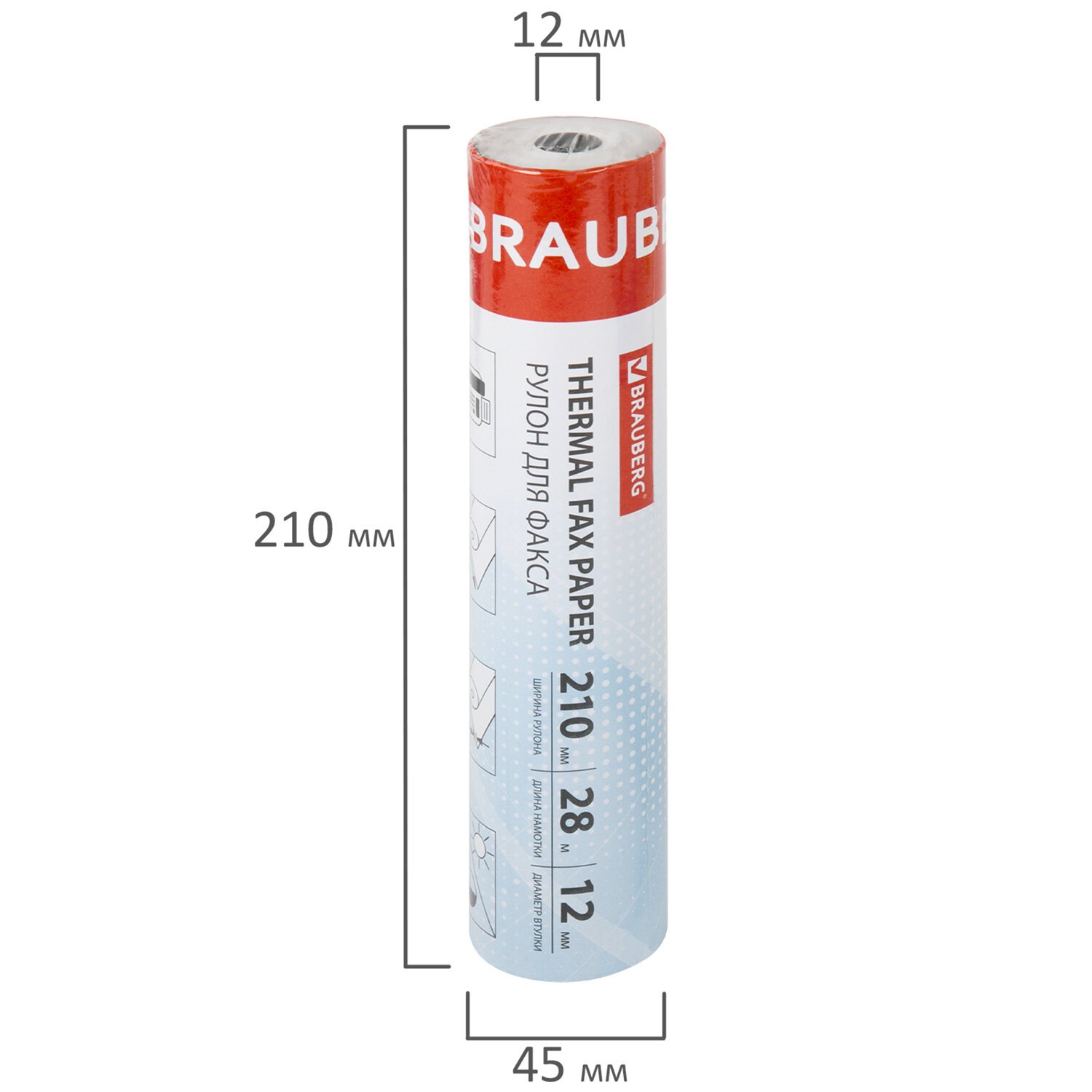 Рулон для факса 210 мм (диаметр 45 мм, длина 28 м, втулка 12 мм), BRAUBERG, 110149