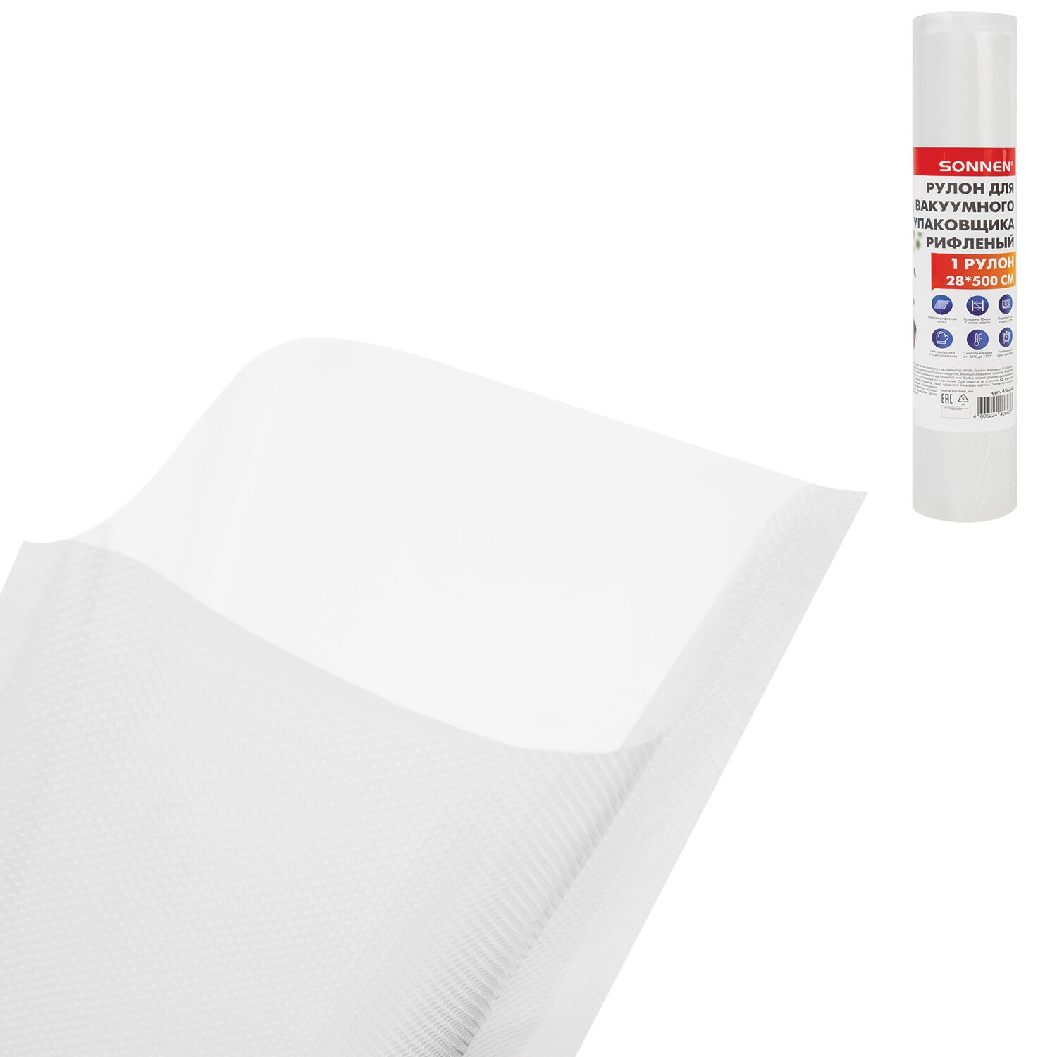 Рулон для вакуумного упаковщика, рифленый, 28х500 см, 1 шт., SONNEN, максимальный вакуум, 456343