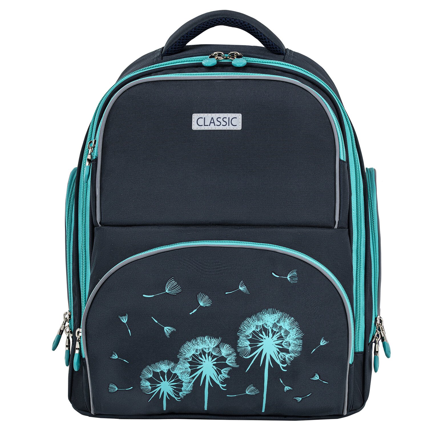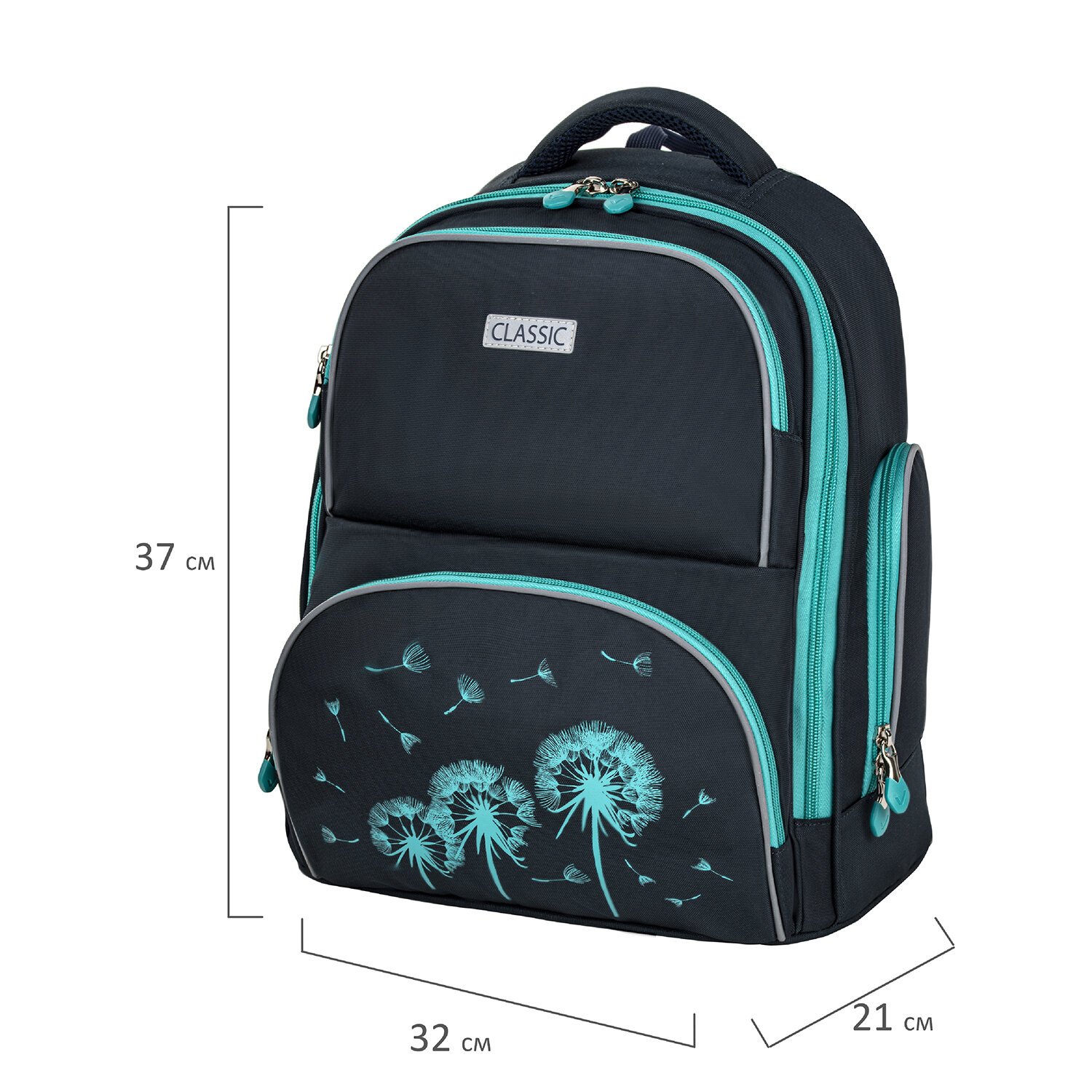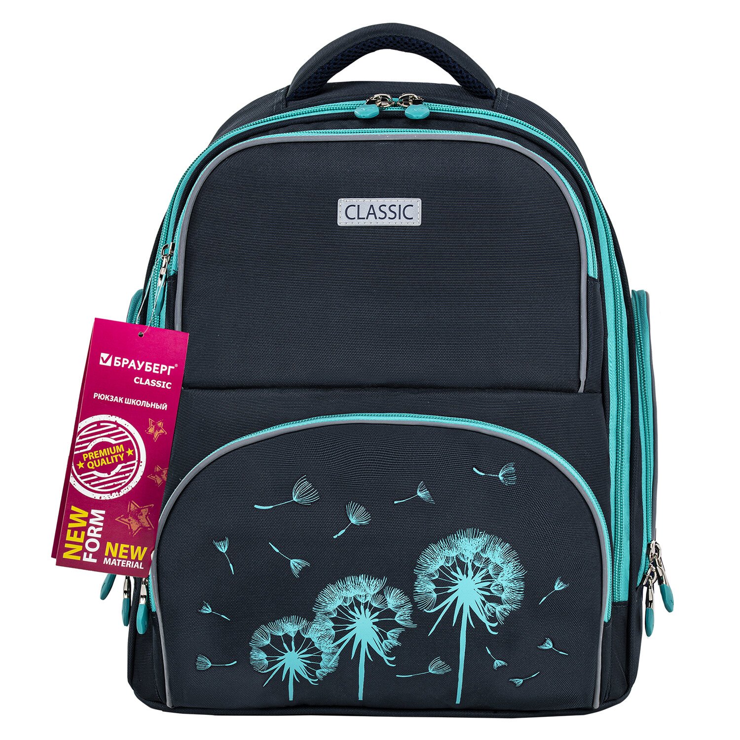 Рюкзак BRAUBERG CLASSIC, легкий каркас, премиум материал, "Dandelions", синий, 37x32х21 см, 270582